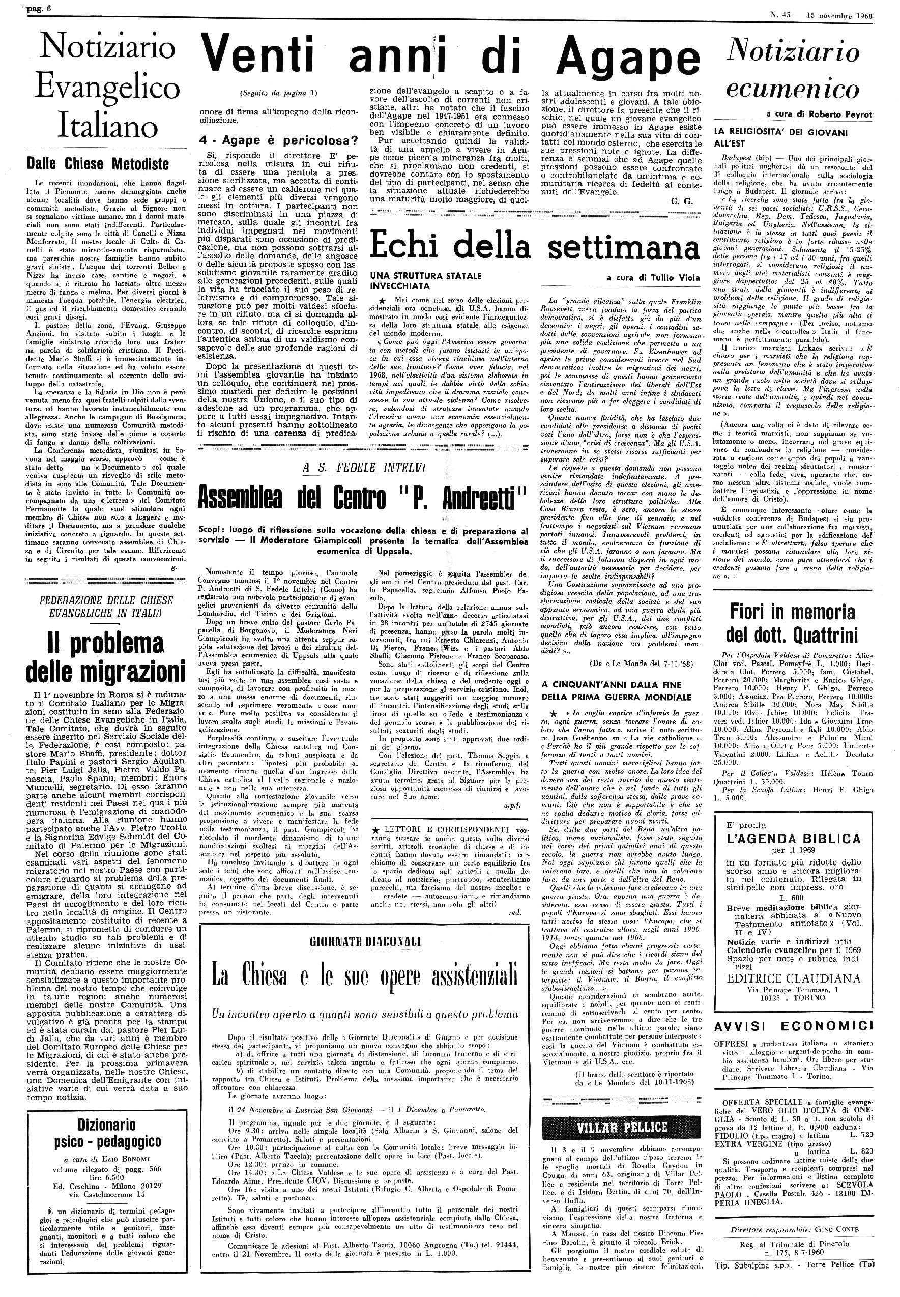 Anno 98 - N. 45 ABBONAMENTI f Eco: L. 2.500 per Tinterno Spedizione in abbonamento postale . I Gruppo bis TORRE PELLICE — 15 Novembre 1968