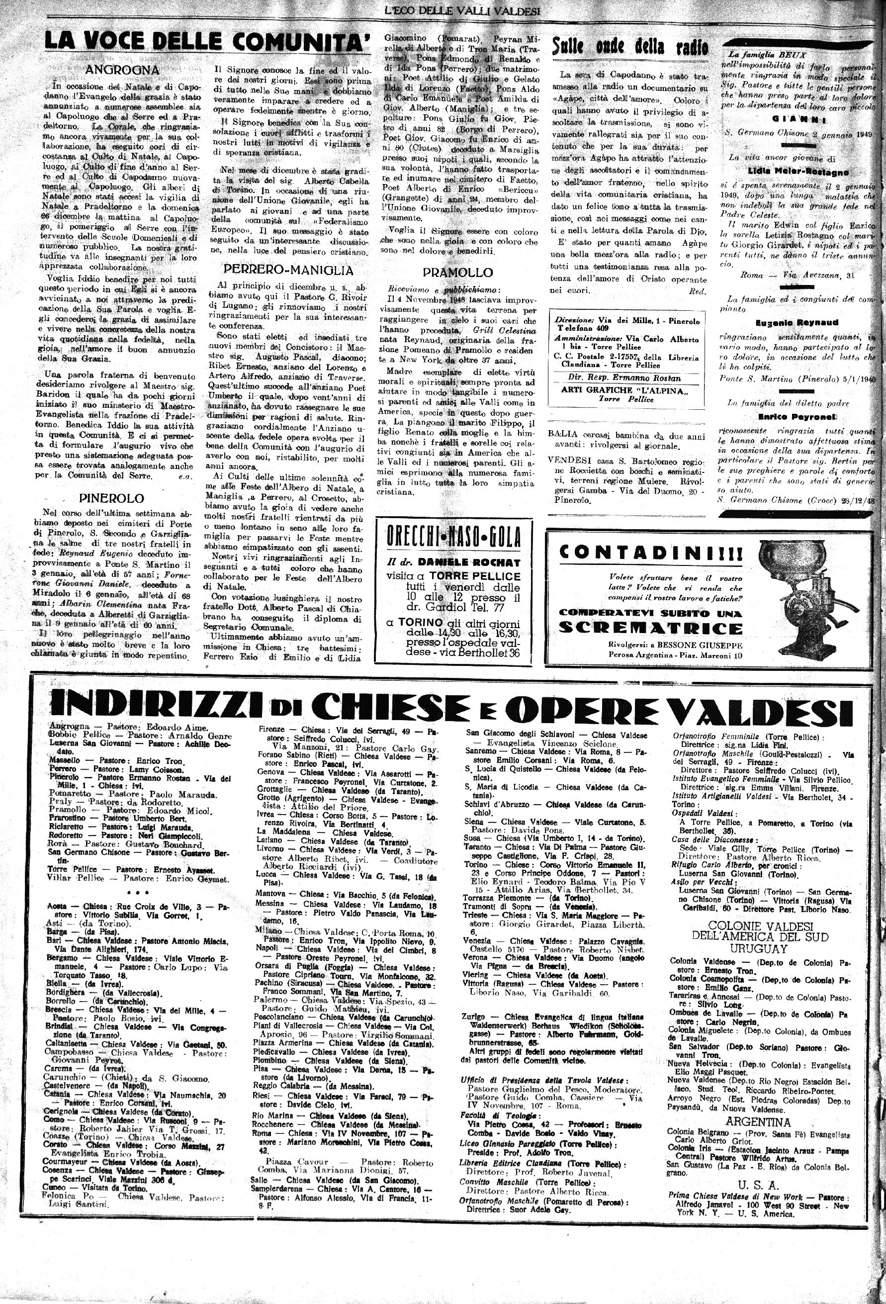Sanremo — Chiesa Valdese : Via Róma, 8 — Pastore Emilio Corsani : Via Roma, 6.