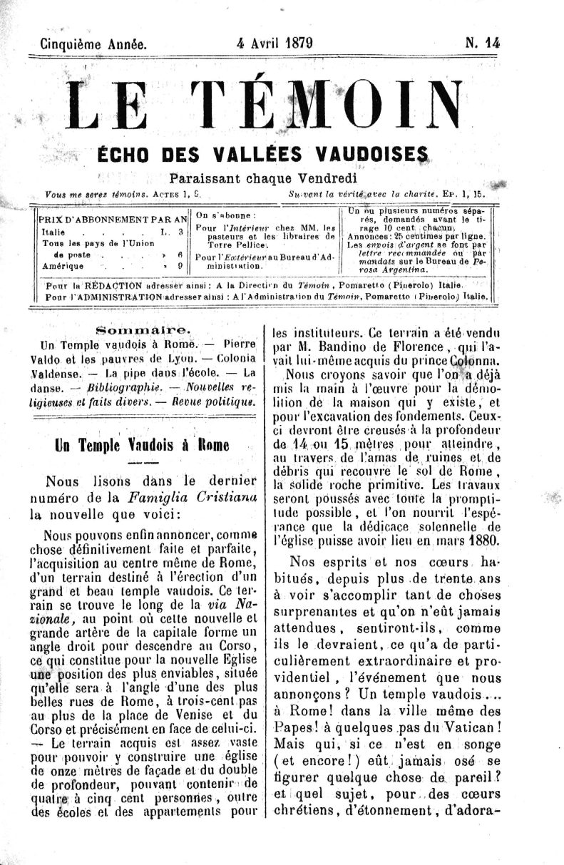 grand et beau temple vaudois. Ce terrain se trouve le long de la via Nazionale, au point où cette nouvelle et