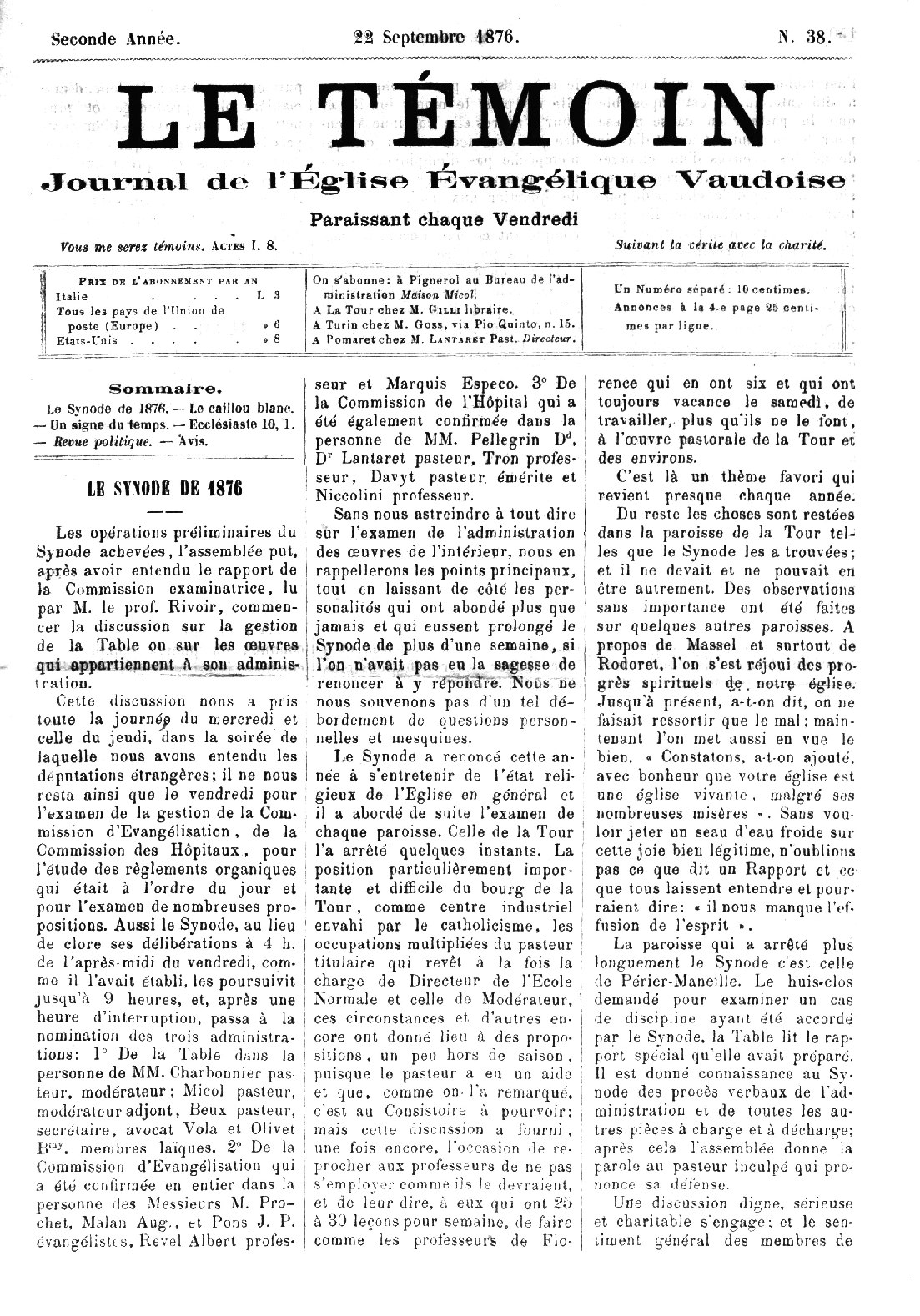 dans la paroisse de la Tour telles que le Synode les a trouvées;
