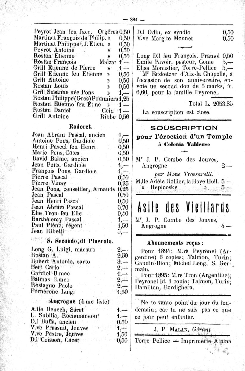 Pour 1894: M.rs Peyr&nel (Argentine) 6 copies; Talmon, Turin;