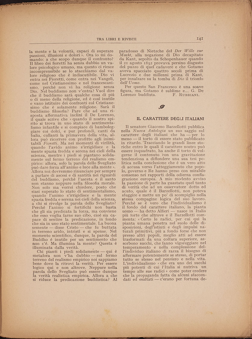 F. Rubbiani: II carattere degl’italiani .................. » 141