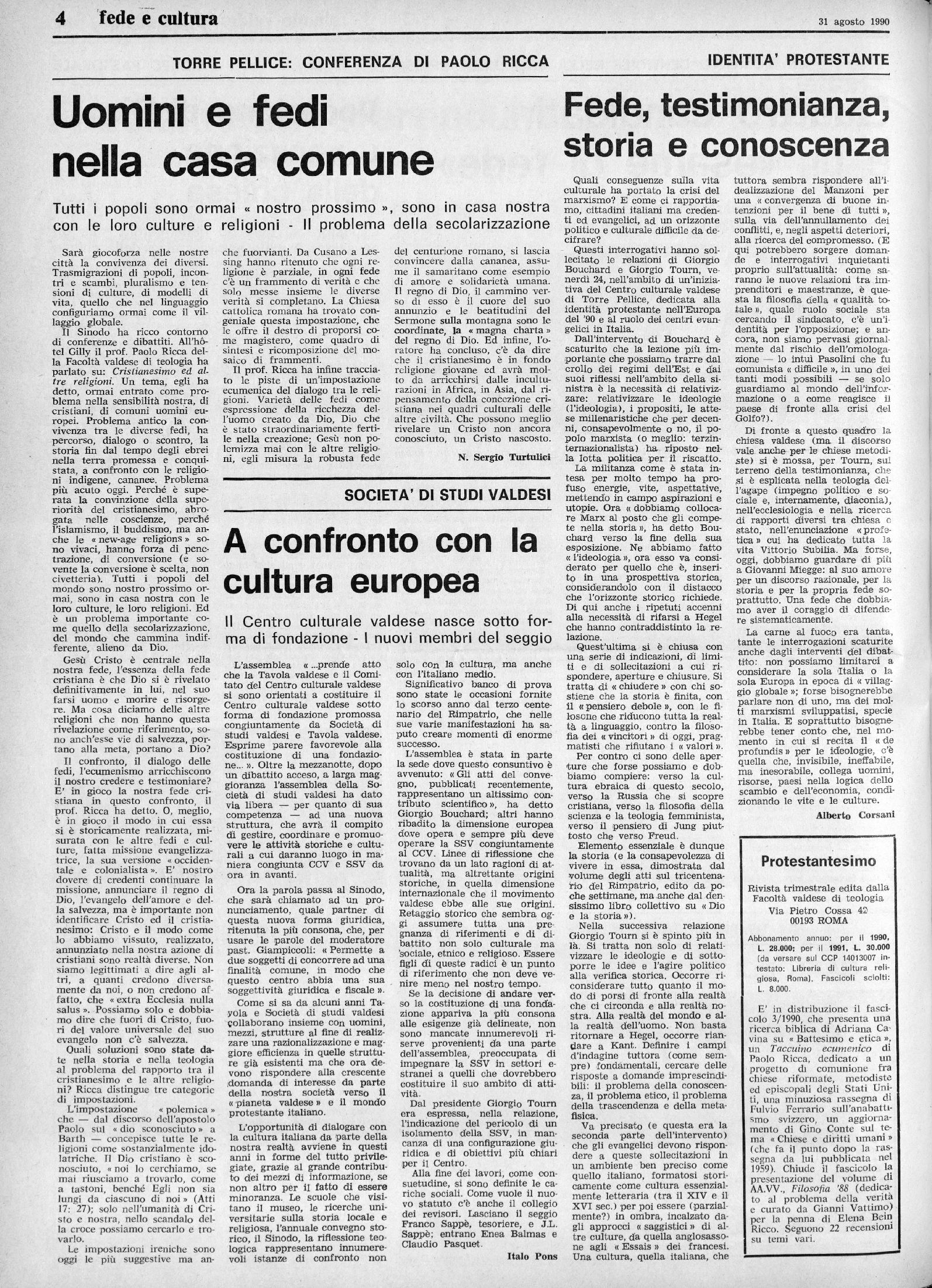 SETTIMANALE DELLE CHIESE EVANGELICHE VALDESI E METODISTE