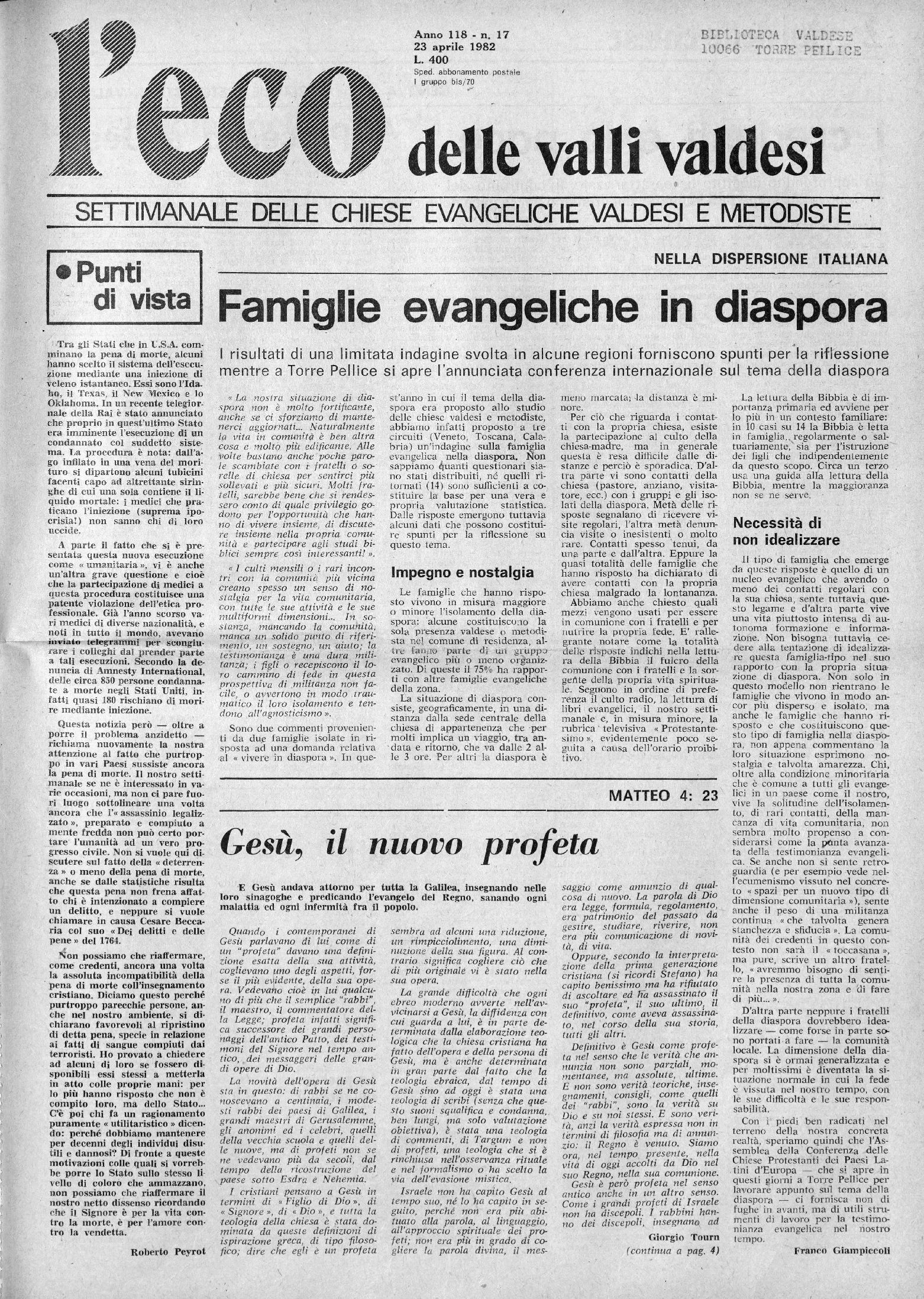 SETTIMANALE DELLE CHIESE EVANGELICHE VALDESI E METODISTE