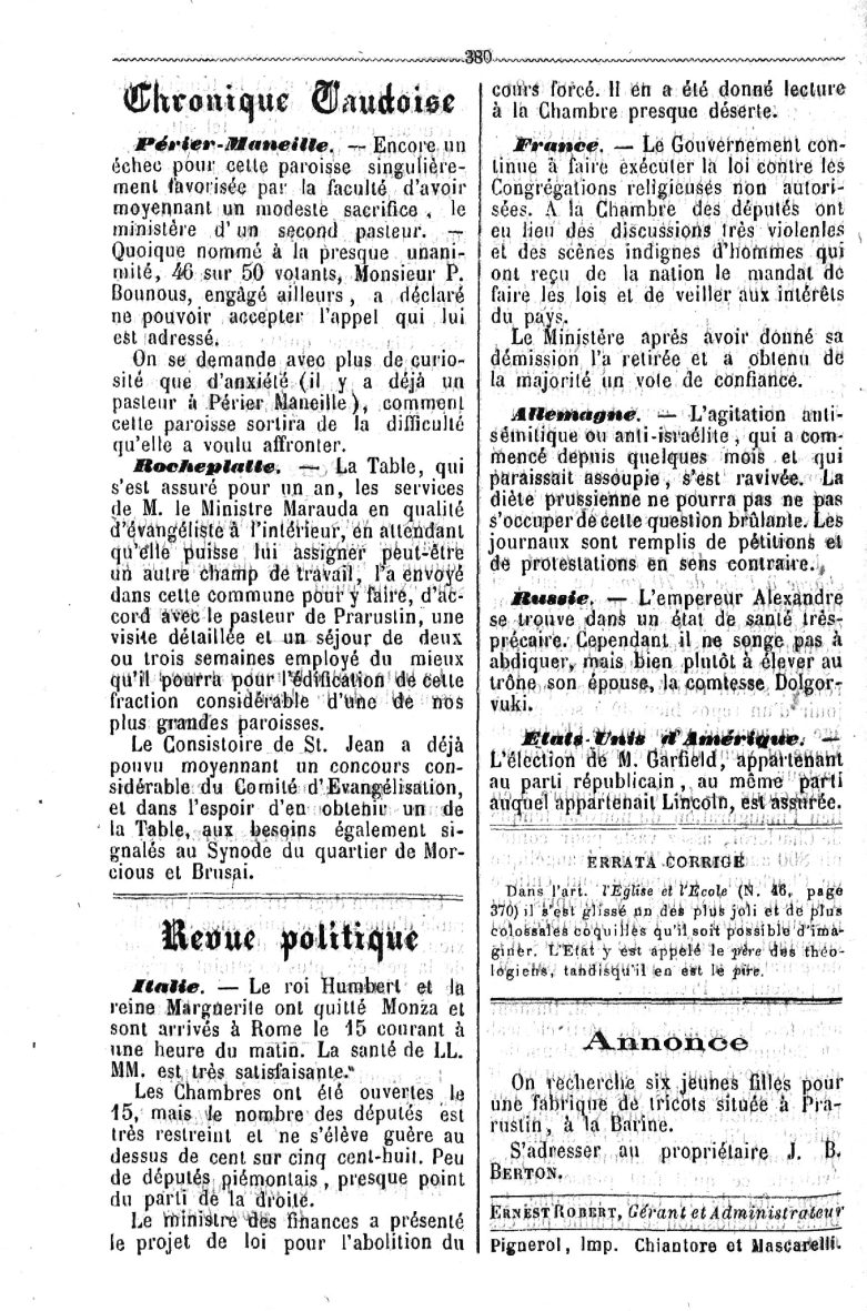 PRIX D’ABBONNBMENTPAR AN Itali« . . ». L. 3 Tou« les pays de TUnion dé ptisxe . . 1 d AméTtqué . . < >0 On s'nbonne i Pour VIntérieur chez MM. le« pasteurs et les librairers de Torre Pellice. Pour rEiCierfet/ï" au Bureau d’Ad- 1 miniattacioû. Un nu plusieurs numéros sépa- rés, demandés avant le ti- rage 10 cent, chacun. Annonces: 25 centimes par ligne. Les envois d'argent ee font par lettre recommandée ou pat mandats sur le Bureau de Pe^ rosa Argentina.
