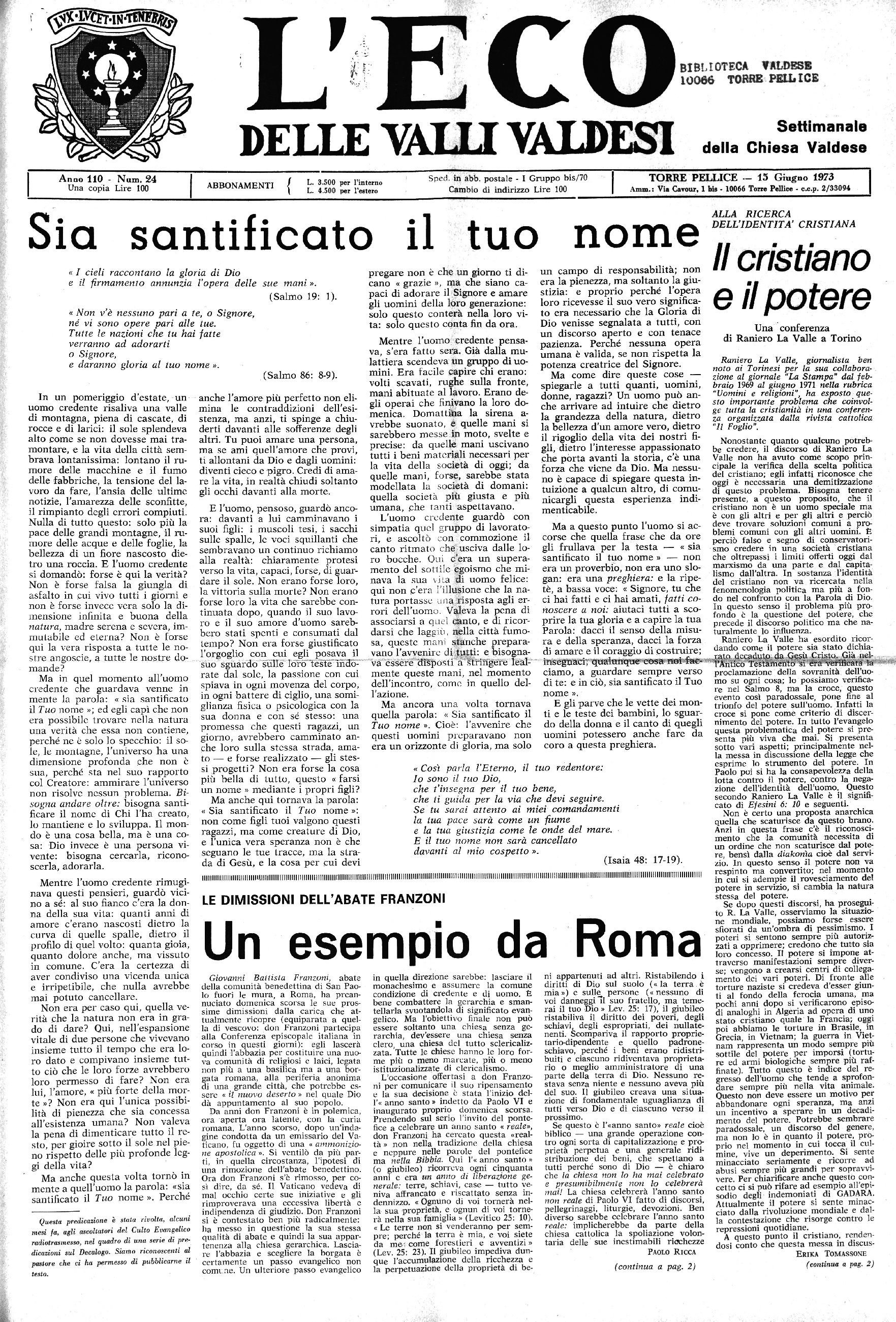 TORRE PEULICE - 15 Giugno 1973
