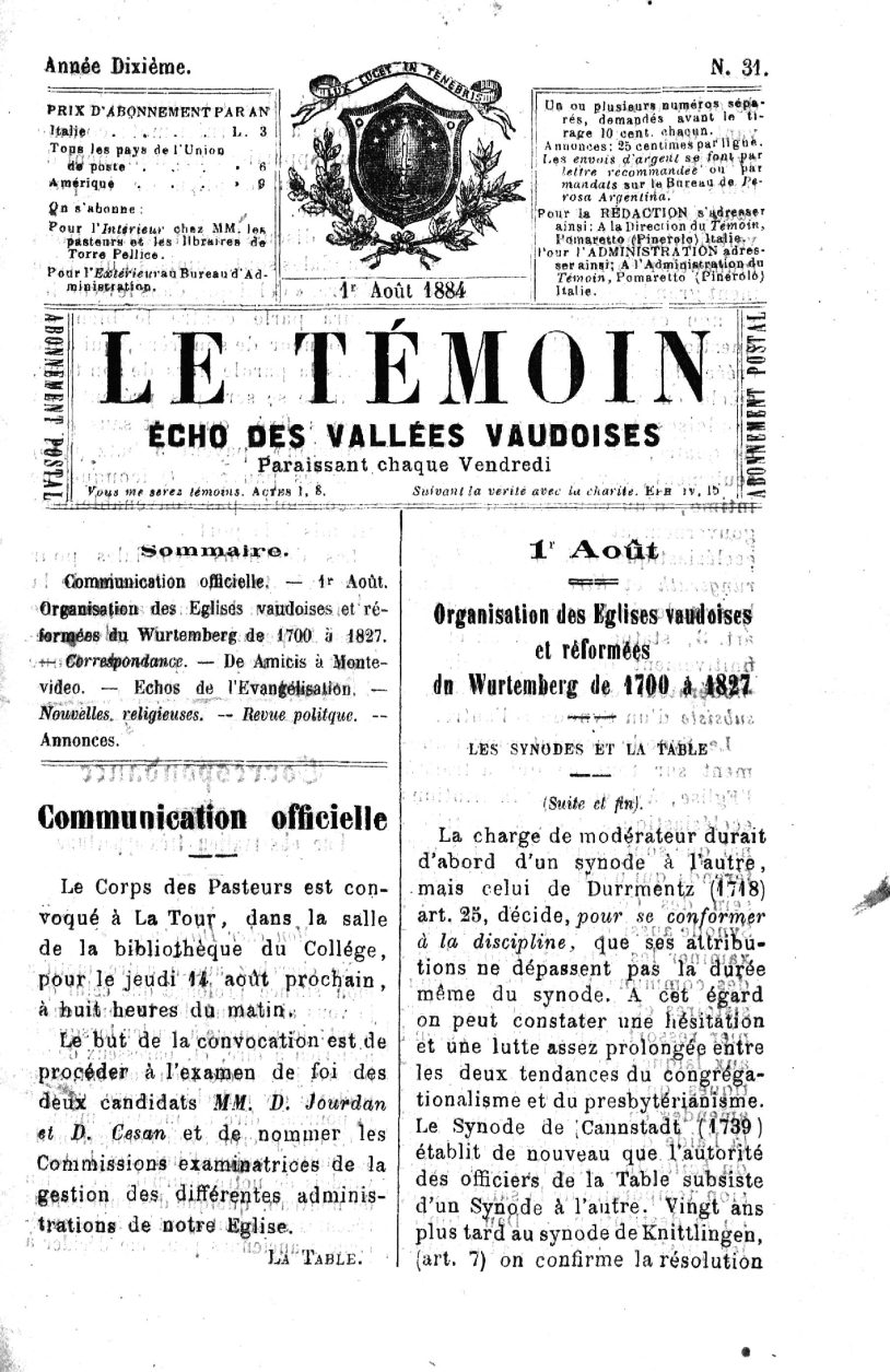 vaudoise. Cette autorité qui servait d’intermédiaire entre les çommunautésréformées et le gouvernement grand-ducal essentiellement,