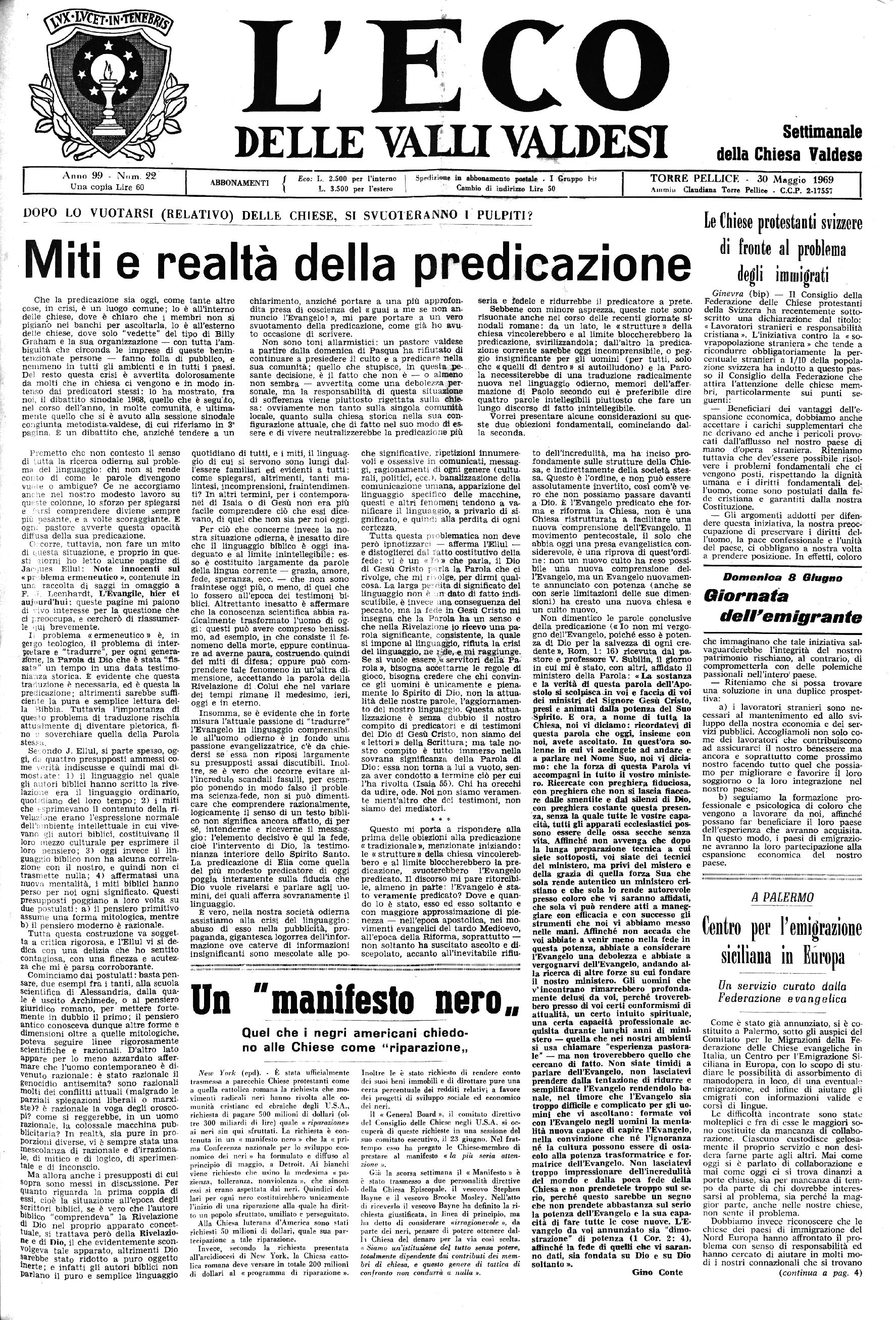 TORRE PELLICE - 30 Maggio 1969