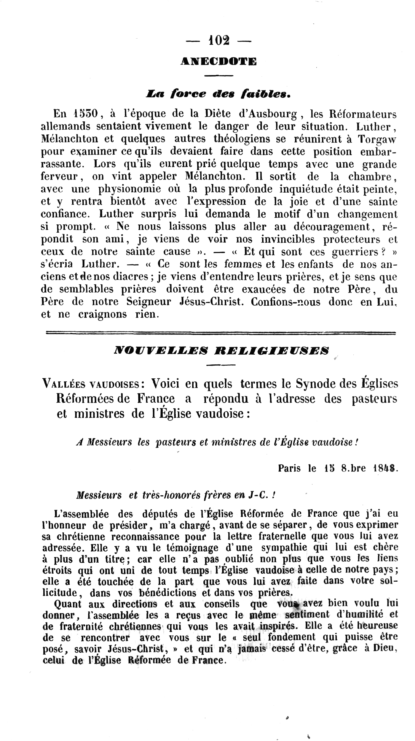 F rance . Le Synode des Églises réformées s’est séparé le 7 octobre après