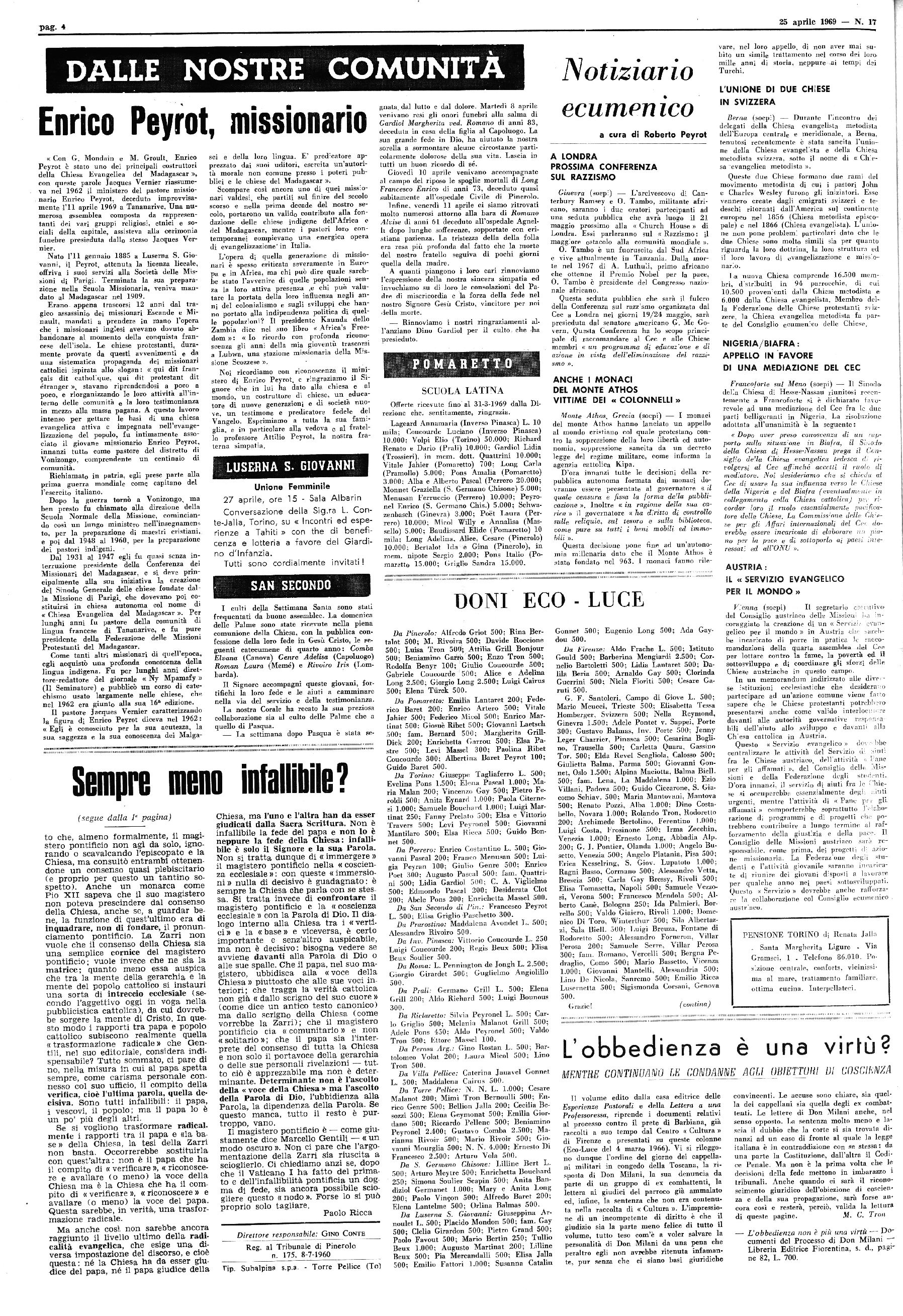 Anno 99 - Nom. 17 ABBONAMENTI f Eco: L. 2.500 per l’interno Spedizione in abbonamento postale . 1 Gruppo hi? FORRE PELLICK - 25 Aprile- 1969