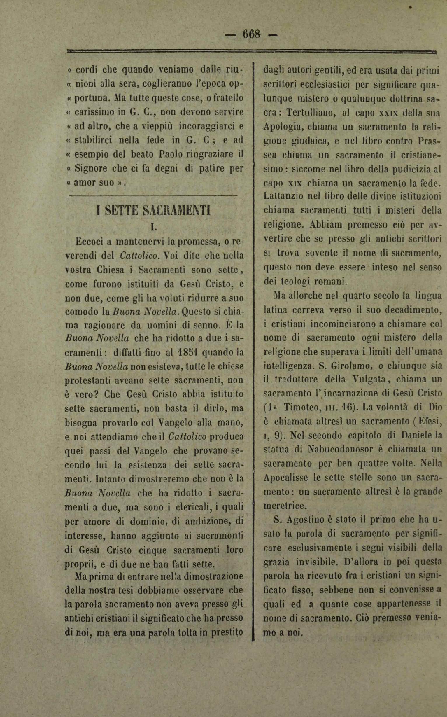 Un’altra voce della Liguria. — 1 sette Sacramenti. — Stampa «lericalc.
