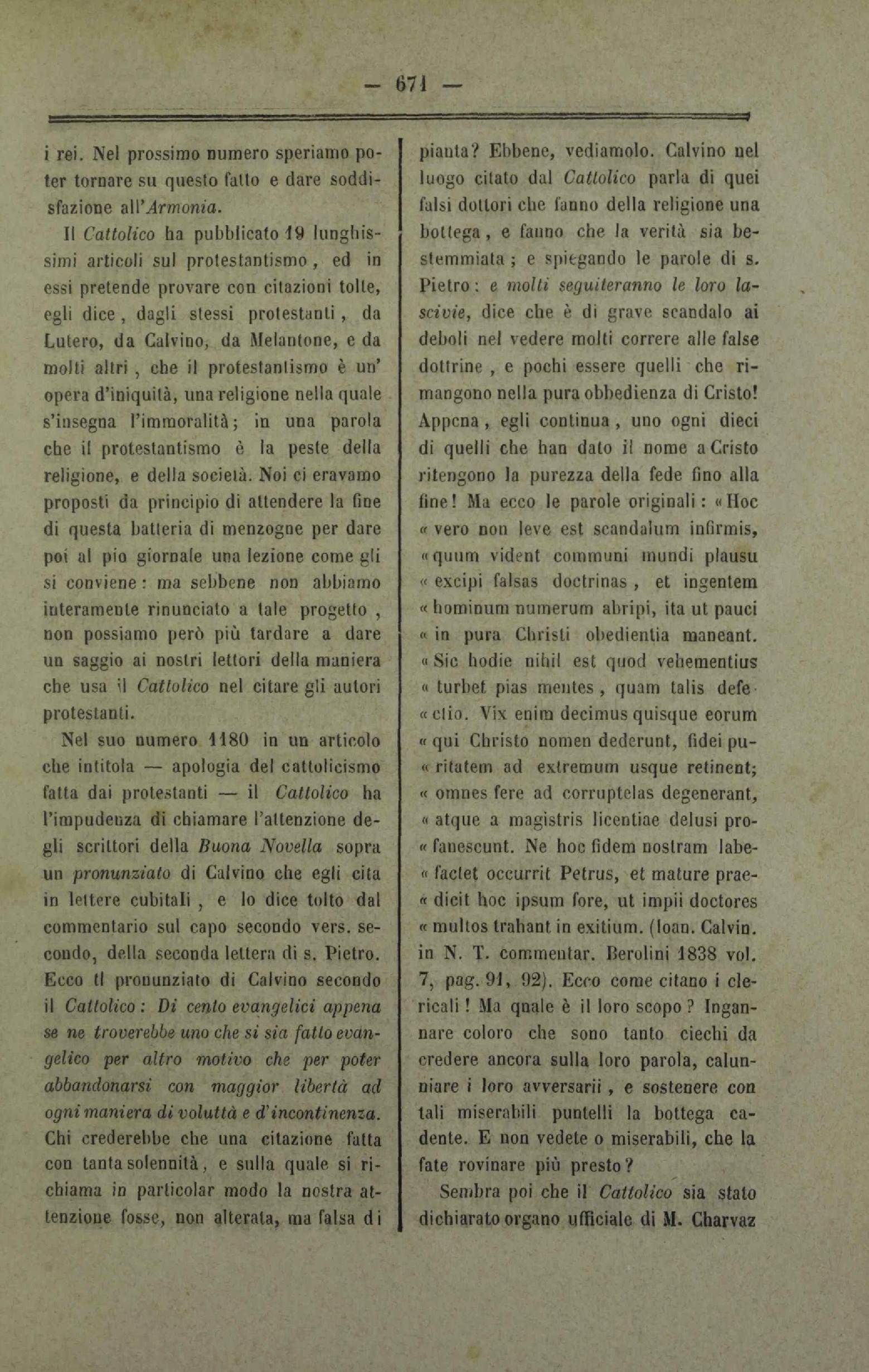 impunemente i Valdesi » noi facevamo allusione alle opere pubblicale da Monsignore, 0 se veramente a qualche fatto o