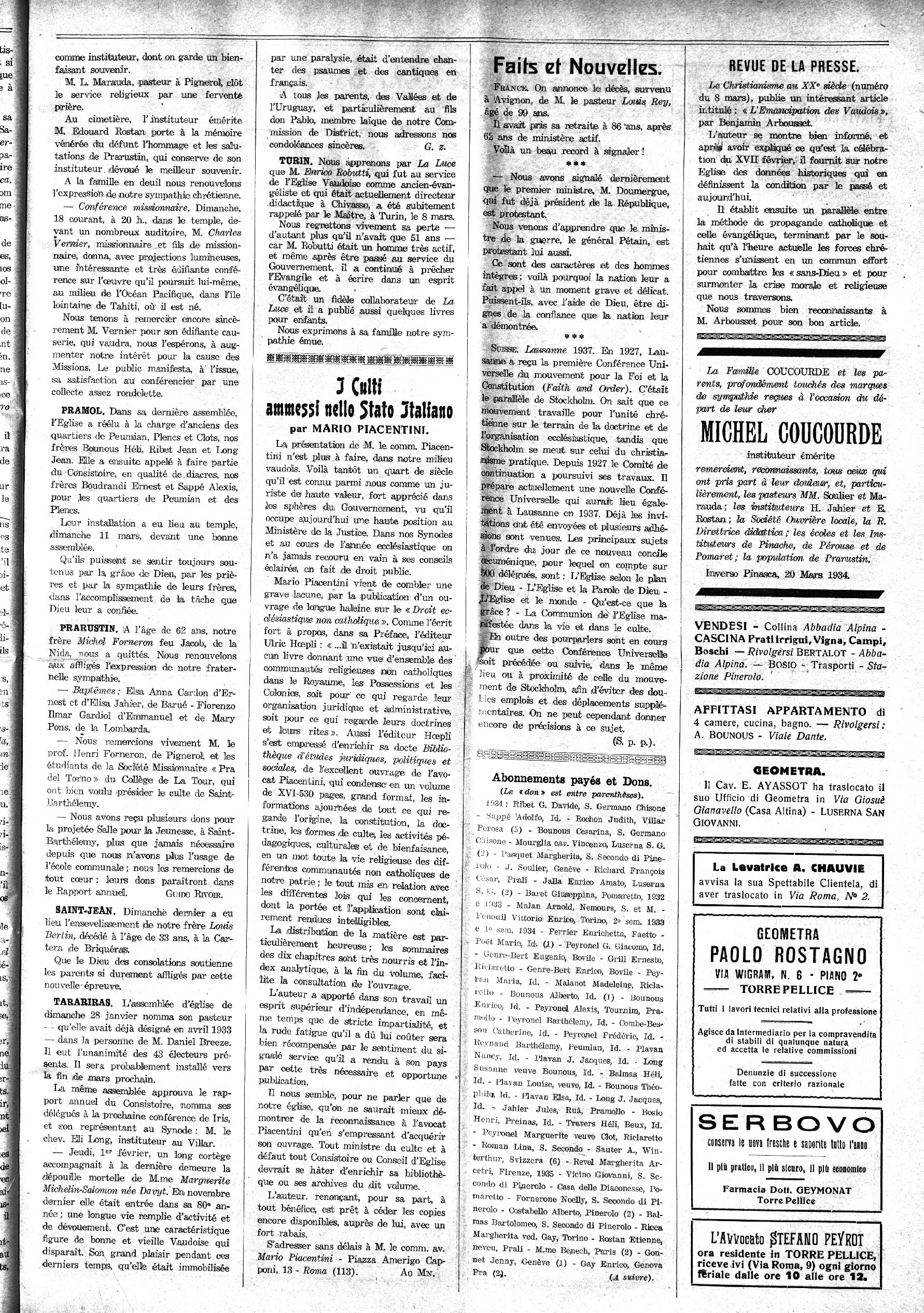 On s'abonne: à TorrePellice, au Bureau d’Administration de l’£cfto(Via Wigram, 2)