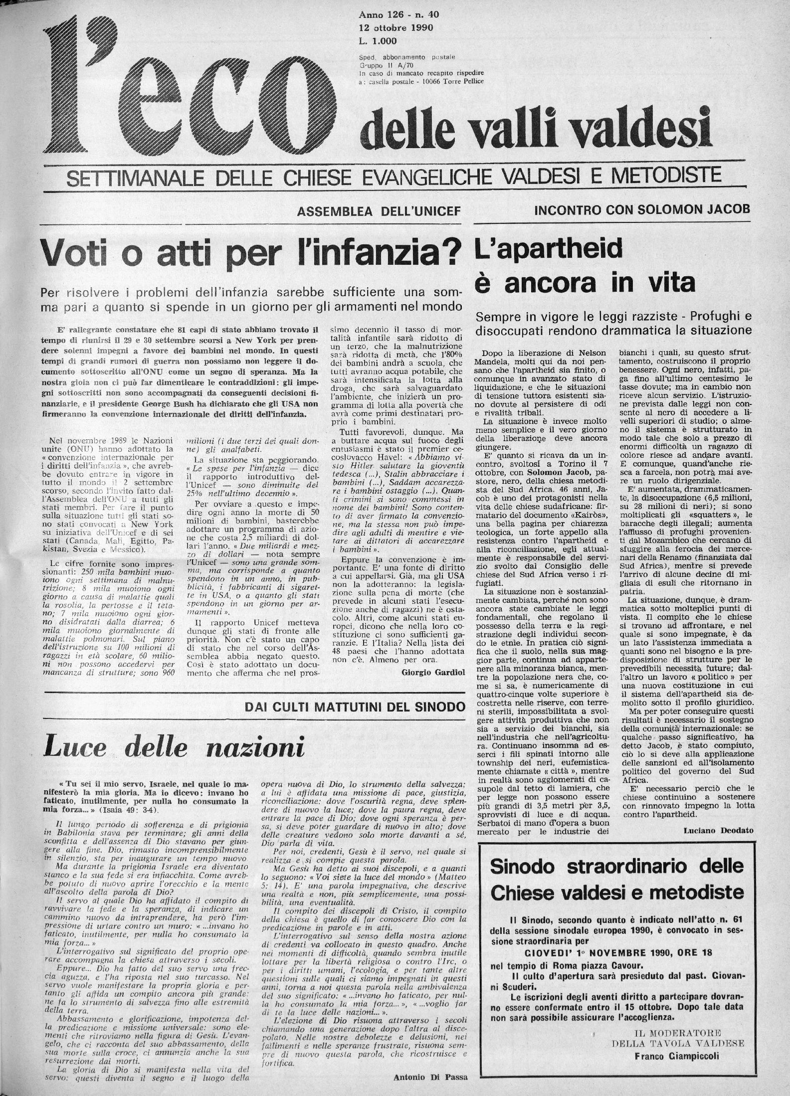SETTIMANALE DELLE CHIESE EVANGELICHE VALDESI E METODISTE