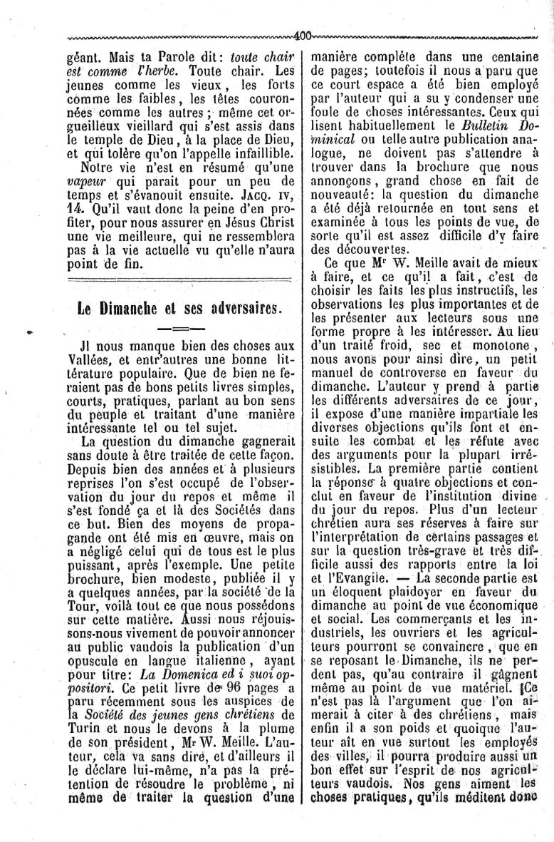 PRIX D’ABBONNEMENT PAR AN Italie . . .. L. 3 Tous les pays de rUnion de poste , . , >6 Amérique . . . 9 On s’abonne : Pour VIntérieur chez MM. les pasteurs et les libraires de Torre Pellice, Pour y Eictérieur au Bureau d'Ad- miulstration. Un ou plusieurs numéros sépa- rés, demandés avant le, ti- rage 10 cent, chacun. Annonces: 25 centimes parligîxe; Les envois d'argent se font par lettre recommandée oui pat mandats sur le Bureau de Pe- rasa Argentina^