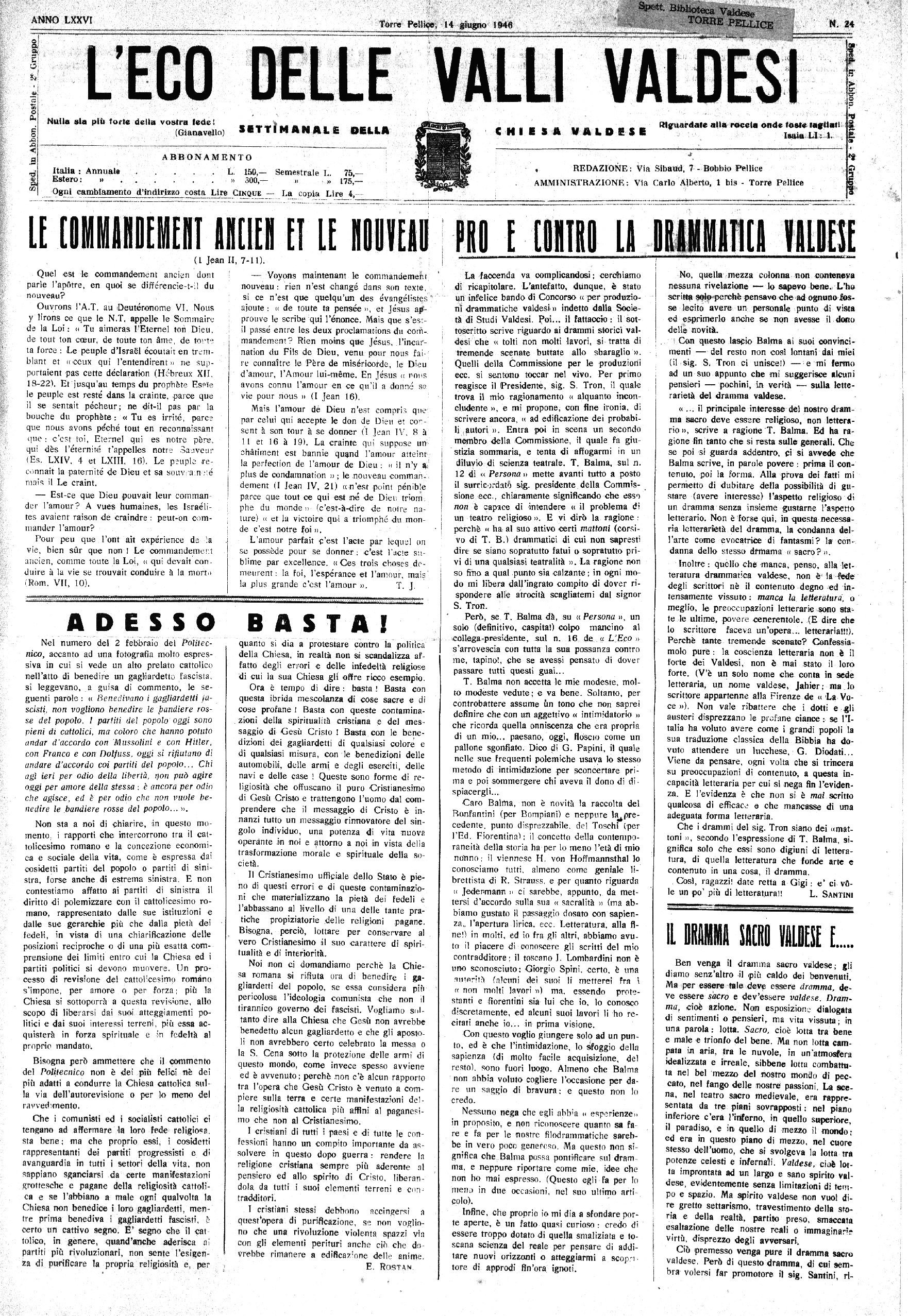 Torre Pellk^v'r 14 giugno 1946 • ' ’ ,' ^ PELLICE
