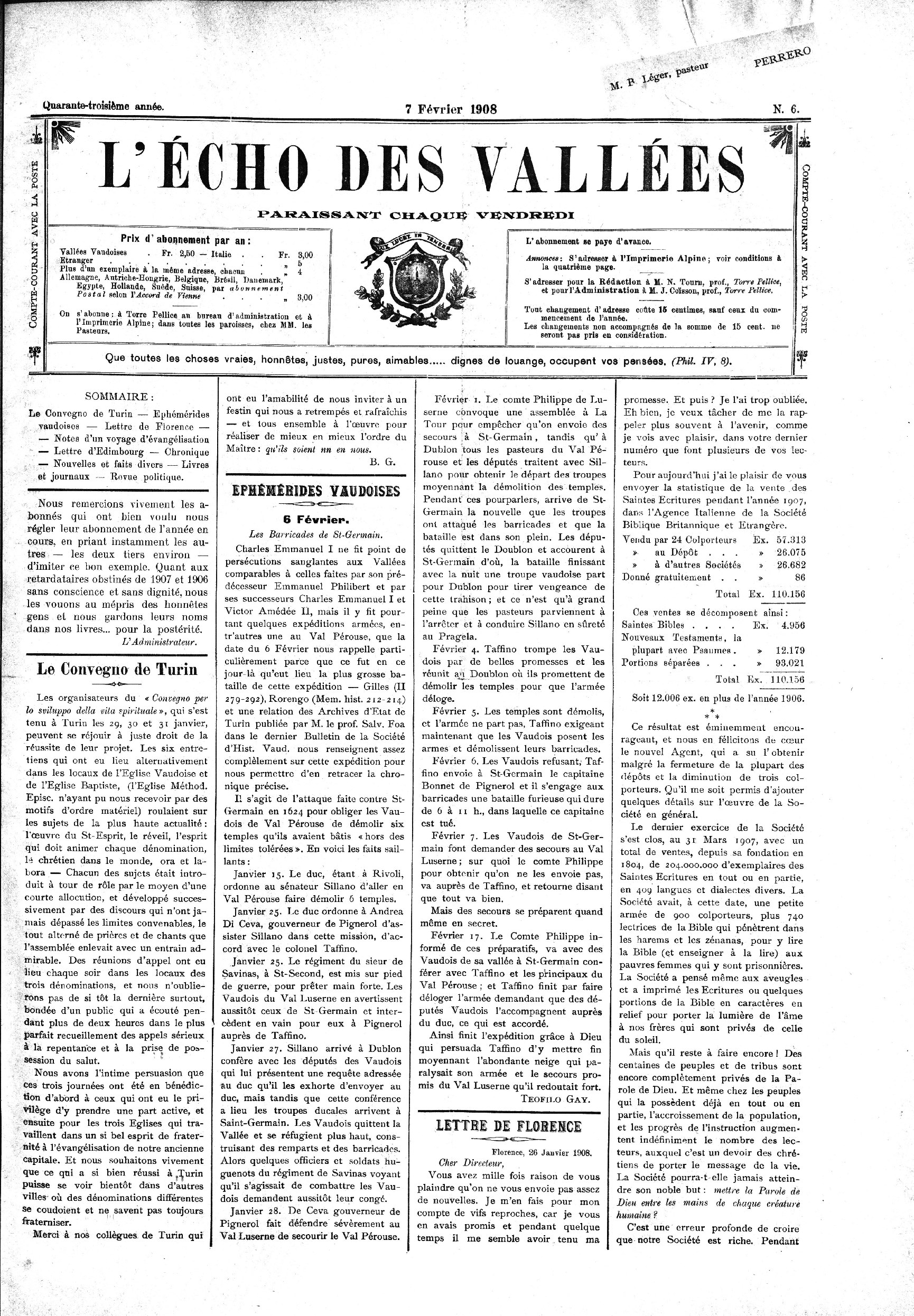 On s’abonne : à Torre Pellice an bnrean d’administration et à