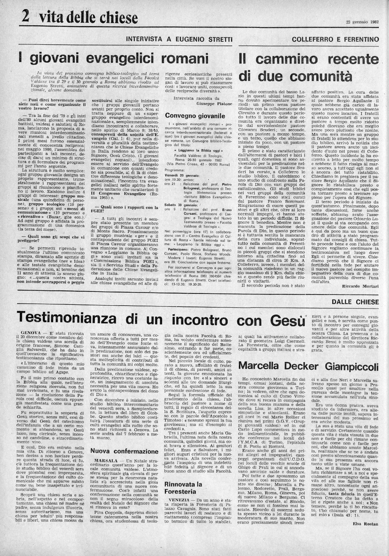 SETTIMANALE DELLE CHIESE EVANGELICHE VALDESI E METODISTE