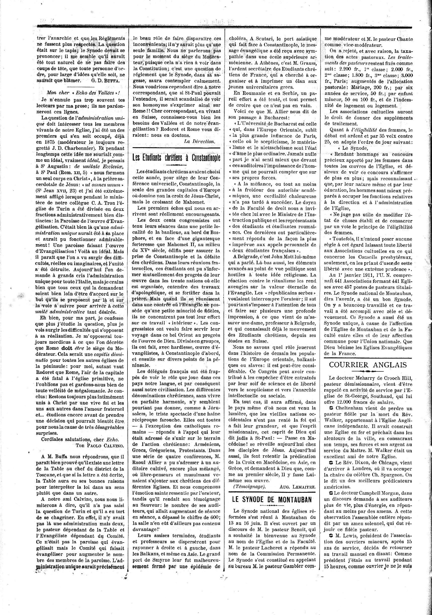 — Correspondance — Les étudiants chrétiens à Constantinople — Le Synode de