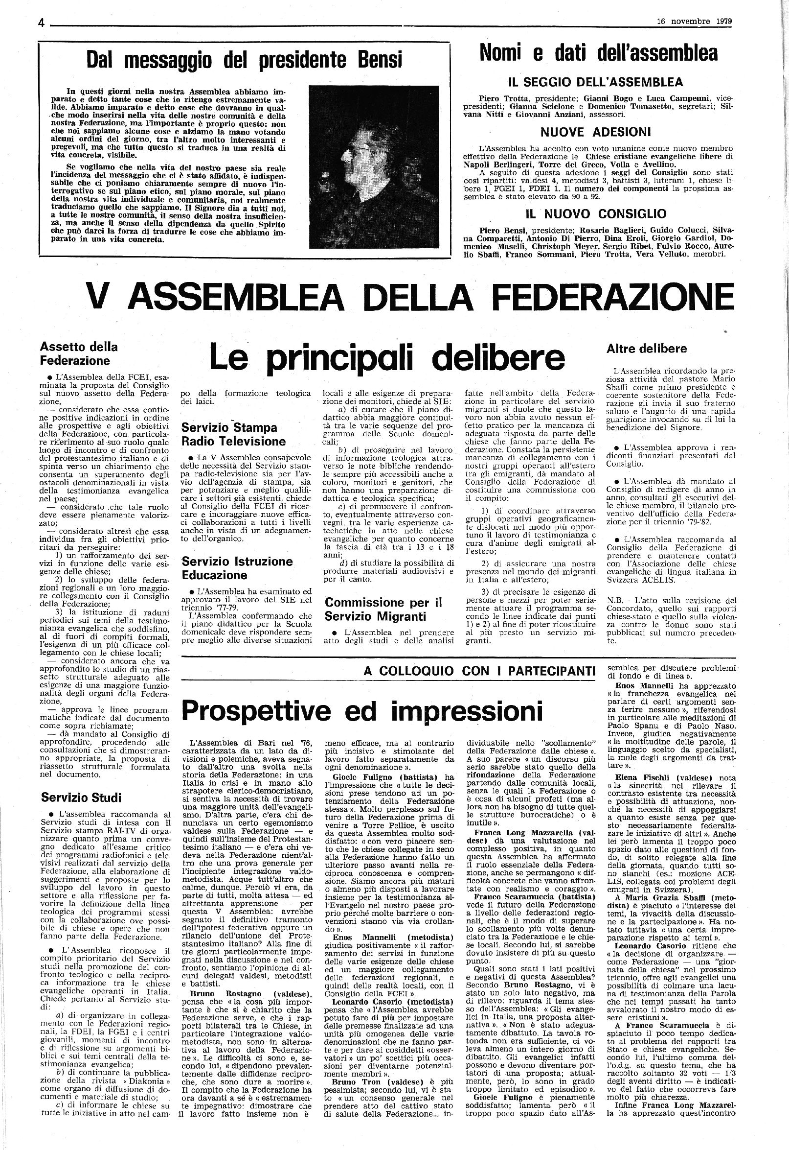 ridimensionamento di alcune illusioni che avevano animato il Congresso di Roma e anche il cammino successivo della Federazione sorta nel ’67: nel suo cammino la Federazione ha dovuto ridimensionare la risonanza che le