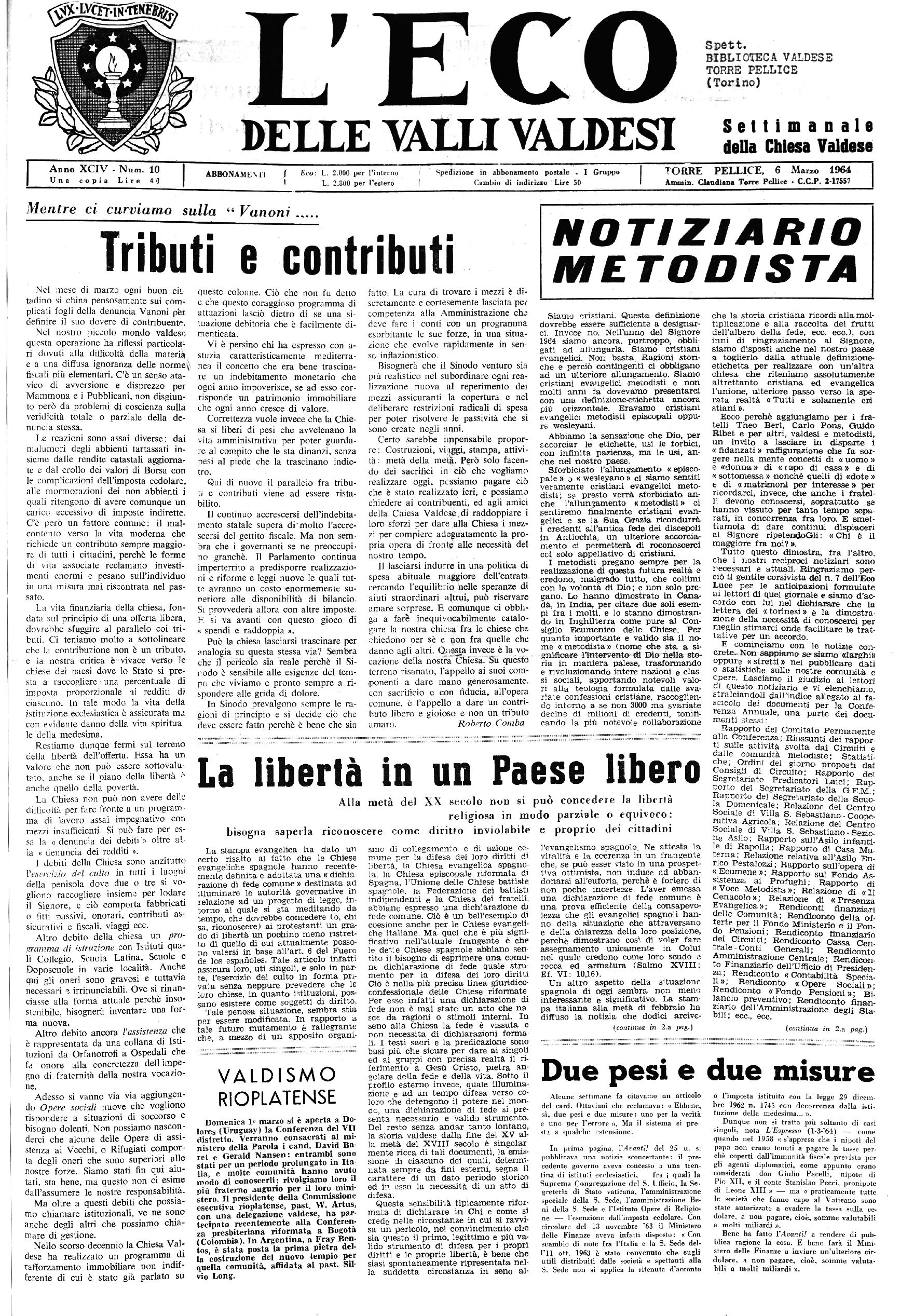 abbonamen n / Eco: L. 2.000 per rinterno Spedizione in abbonamento postale . I Gruppo TORRE PELLICE. 6 Marzo 1964