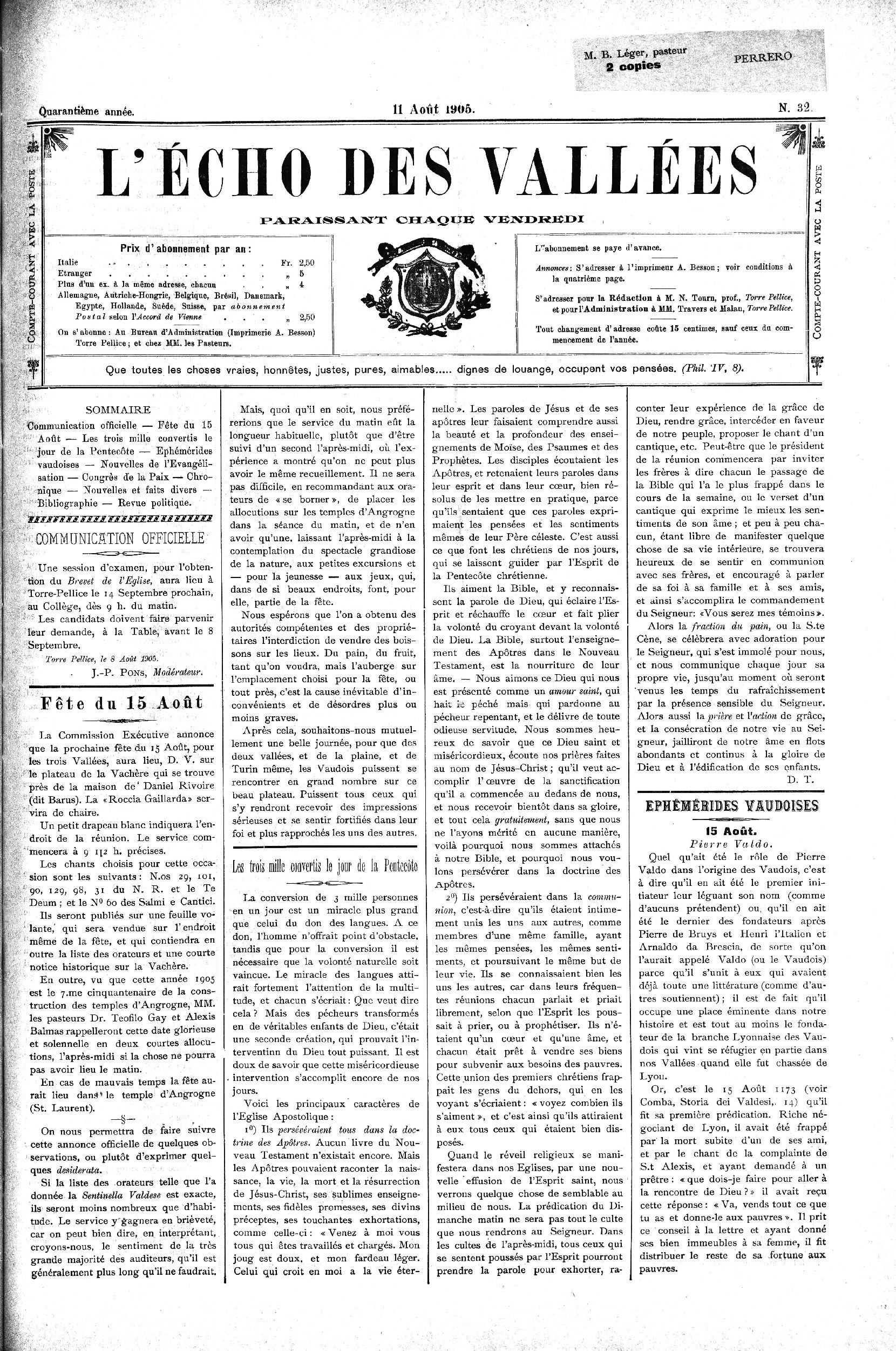 •* vaudoises — Nouvelles de l’Evangélisation — Congrès de la Paix — Chronique — Nouvelles et faits divers —