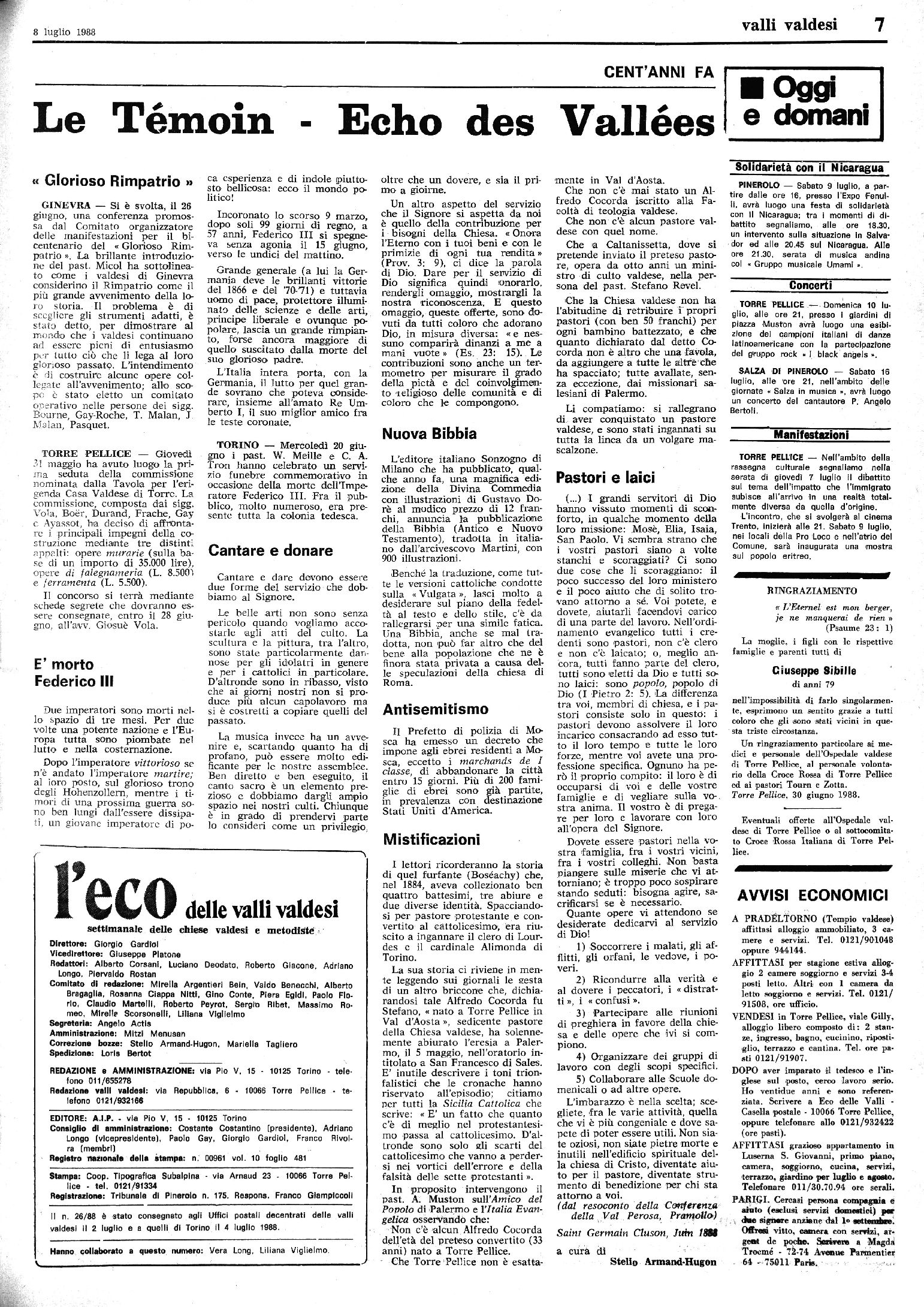 SETTIMANALE DELLE CHIESE EVANGELICHE VALDESI E METODISTE