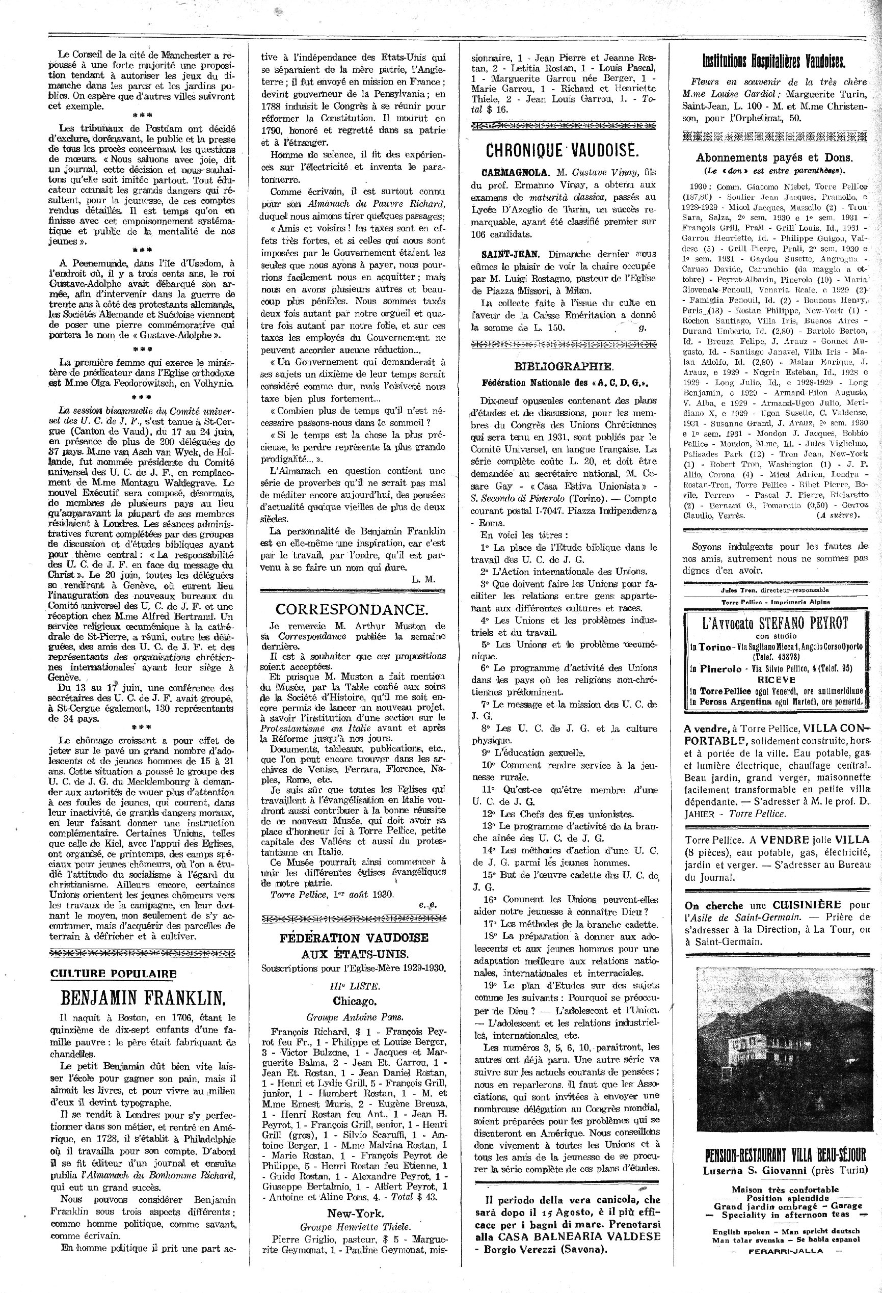 S’adresser : pour la Rédaction, à M. le Pasteur JriFS Trojv - Torre Pellice