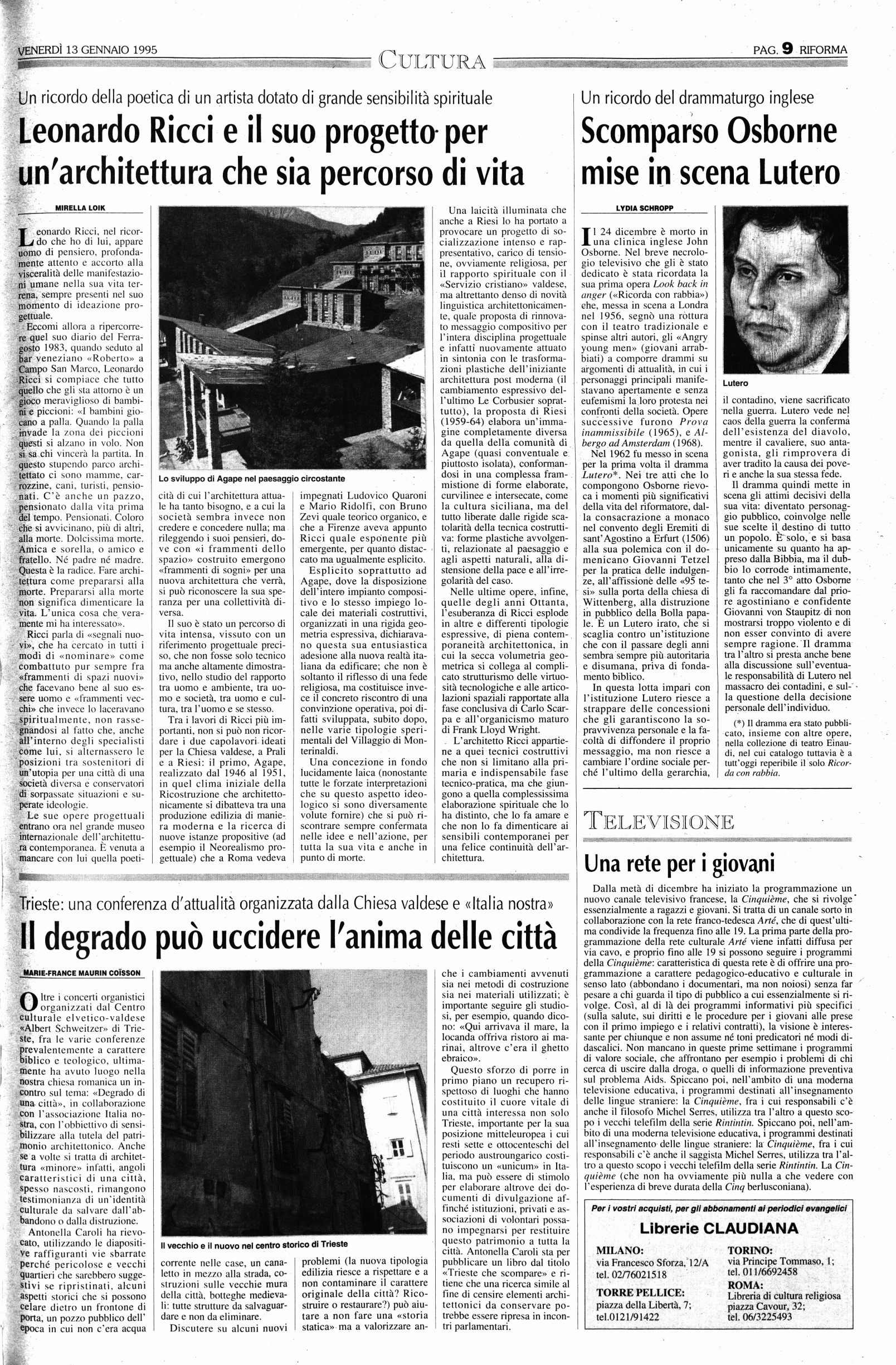 SETTIMANALE DELLE CHIESE EVANGELICHE BATTISTE, METODISTE, VALDESI
