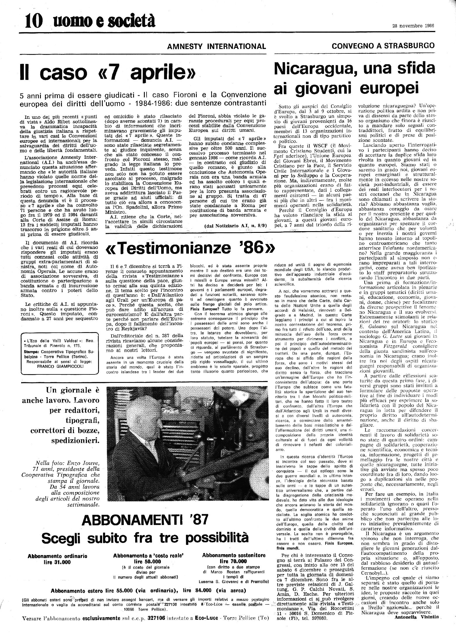 Abbonamento estero lire 55.000 (via ordinaria), lire 84.000 (via aerea)