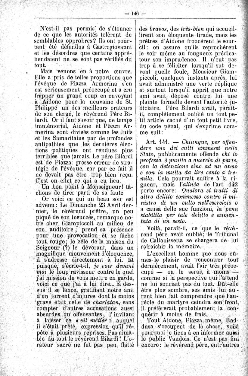 i- - engagée et même une corresponî dance parue sur le Giornale di Sicilia, s’en est laite l'écho.
