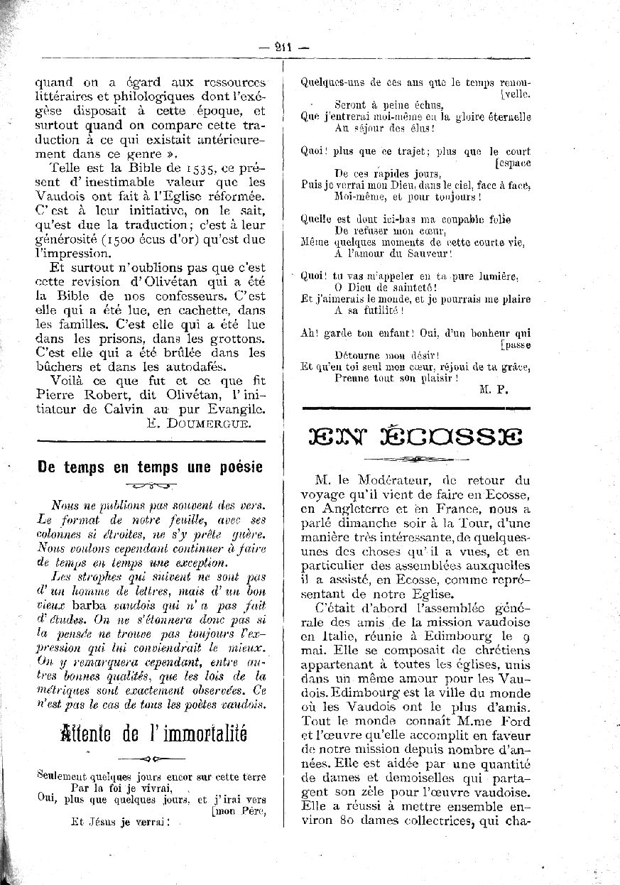 Ecosse —- Eviuig'éJisatiou — Cliroiiicnie