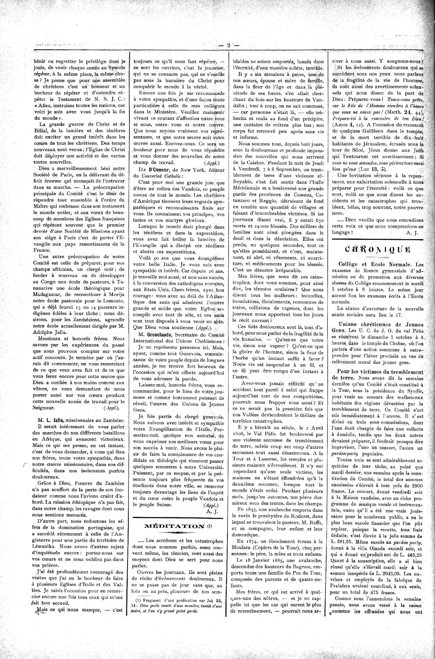 S’adresser pour la Rédaction à M. N. Tourn, prof., Torre Pellice,