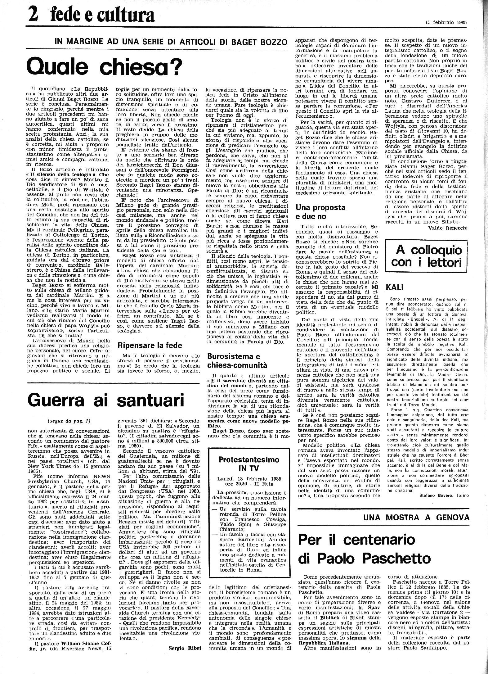 SETTIMANALE DELLE CHIESE EVANGEUCHE VALDESI E METODISTE