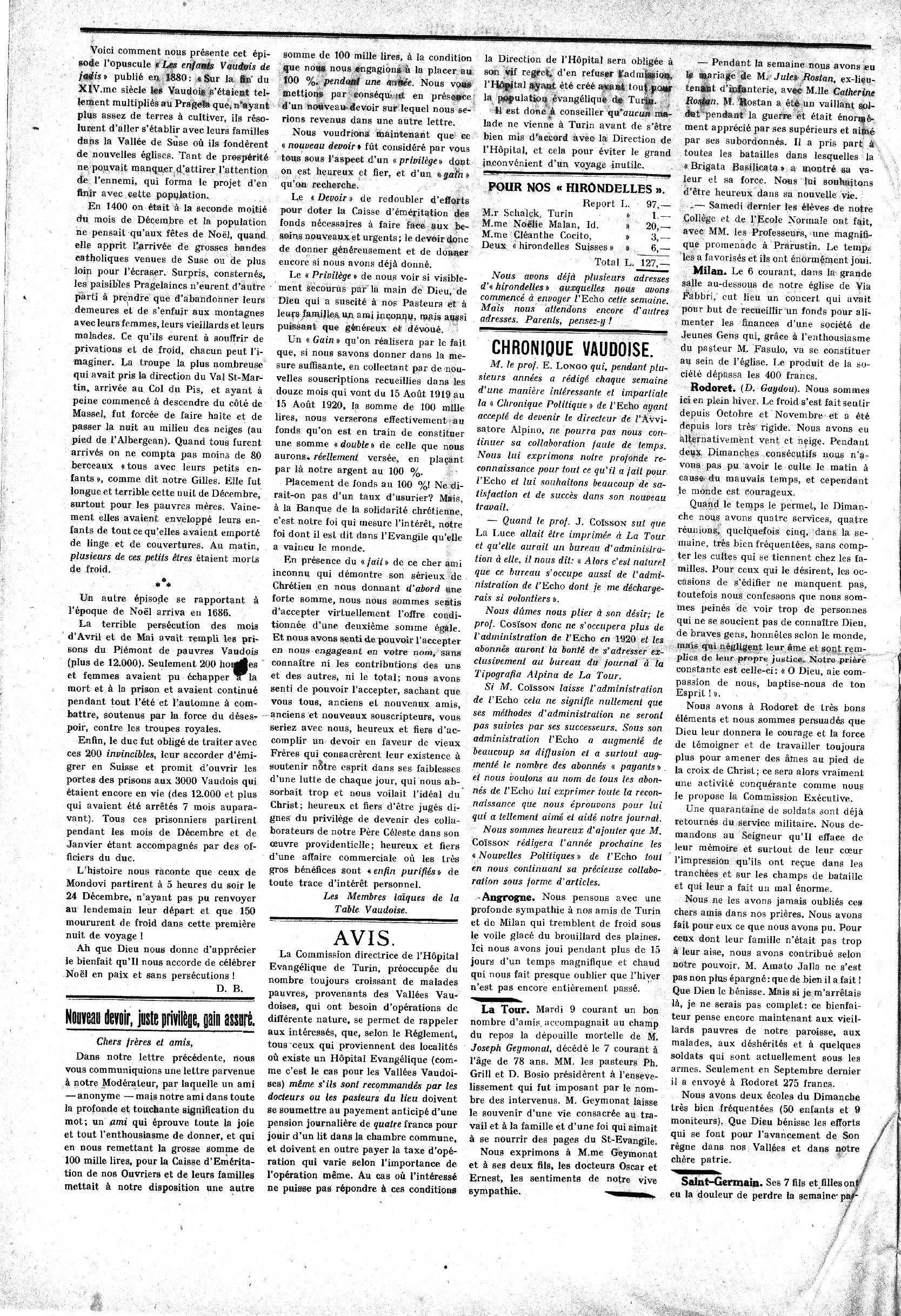 Alpina - Torre Pellice) et à MM. lesPasteurs des Paroisses Vaudoises. .