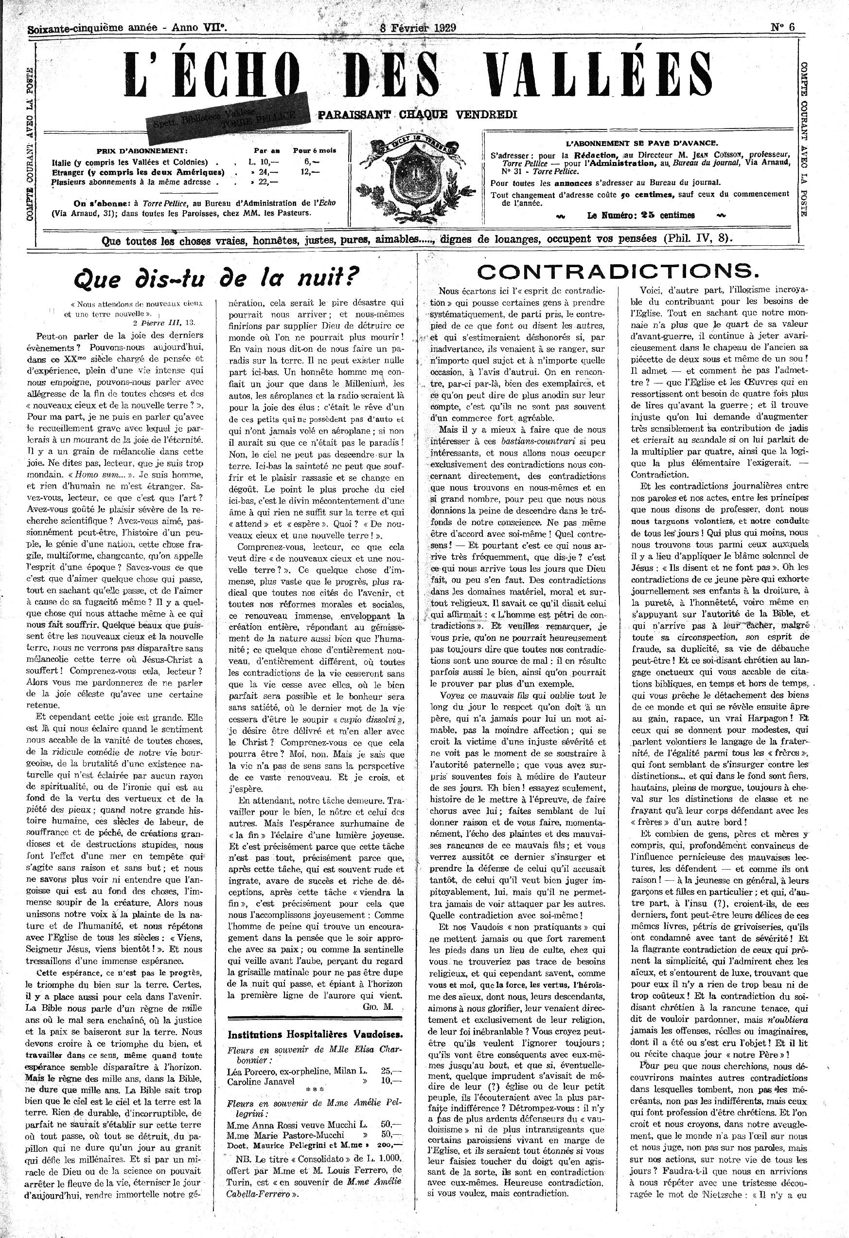 Torre Pellice — pour l’Administration, au. Bureau du journal, Via Arnaud,