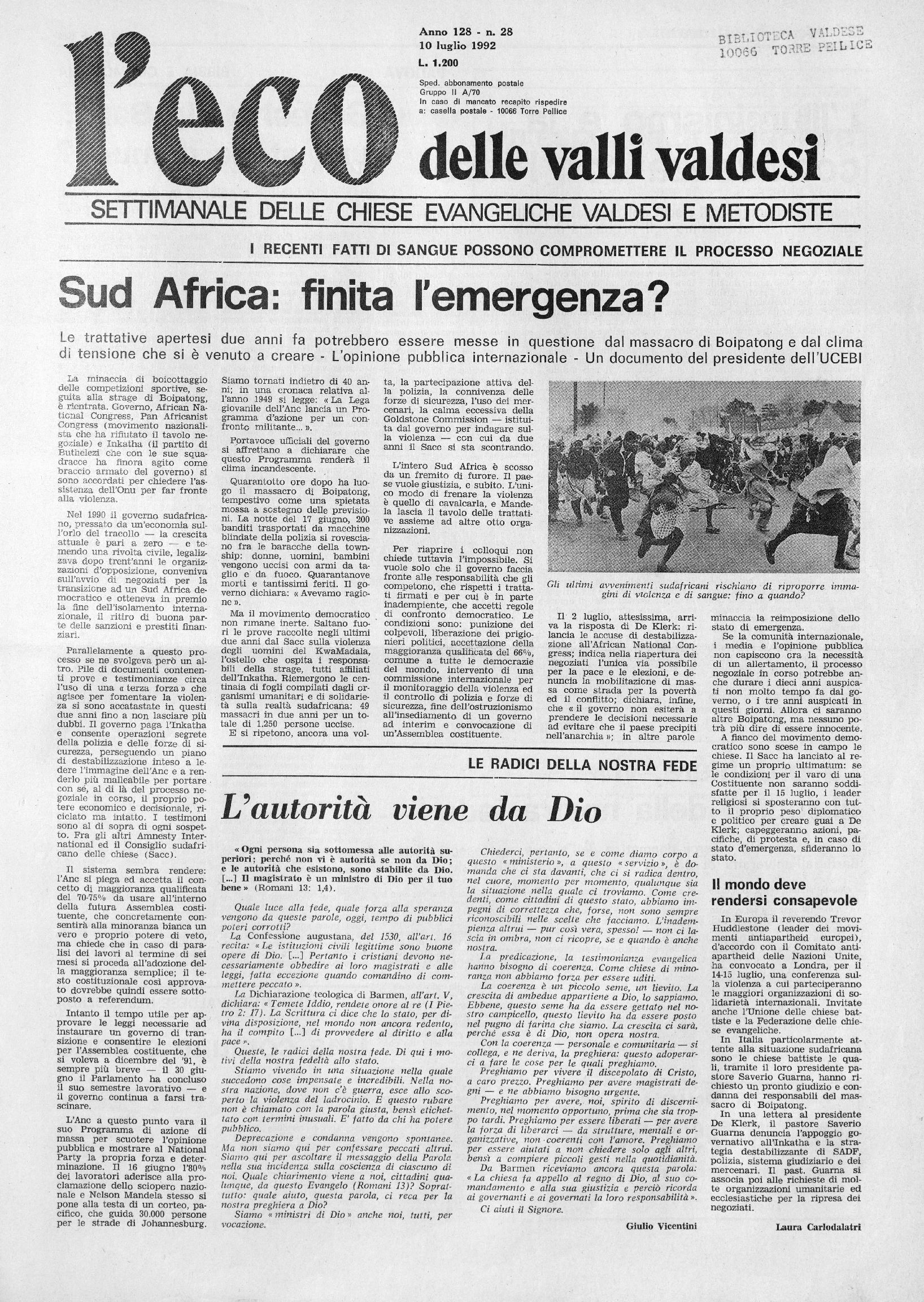 deU’Inkatha. Riemergono le centinaia di fogli compilati dagli organismi umanitari e di solidarietà sulla realtà sudafricana: 49