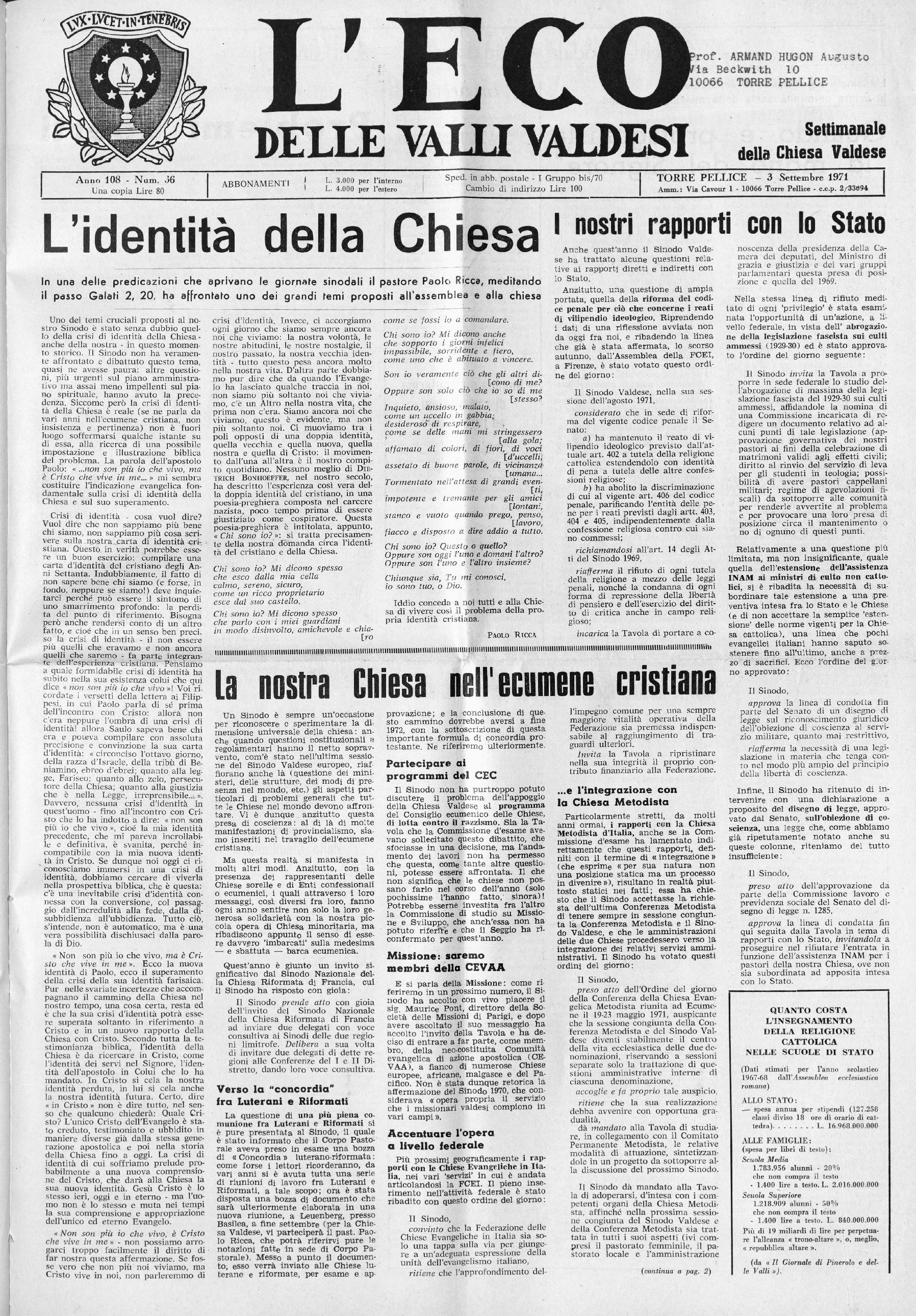 I I I « I I I ili Anche quest’anno il Sinodo Valde- noscenza della presidenza della Ca