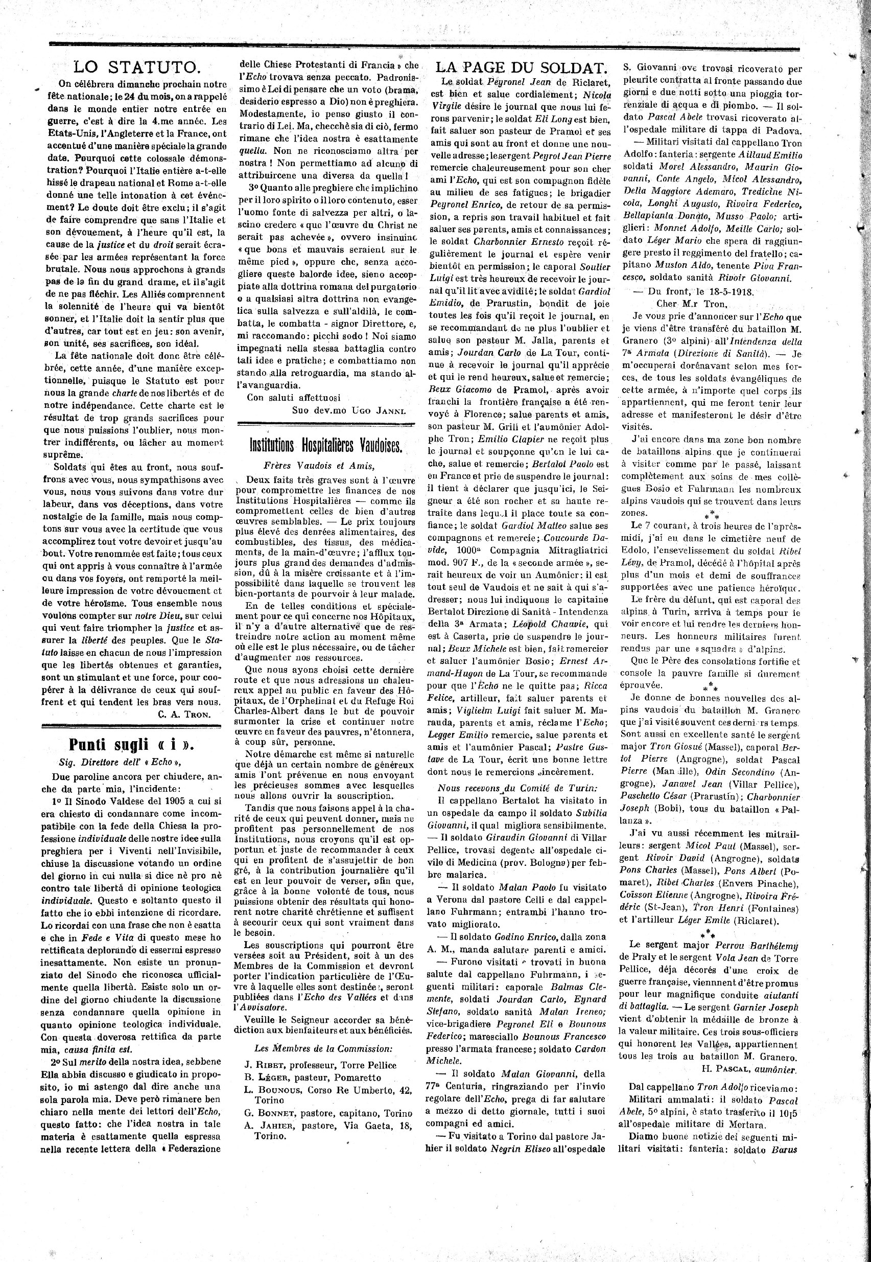 S’adresser pour la Rédaction à M. C.-A. Tron, past., Torre Pellice