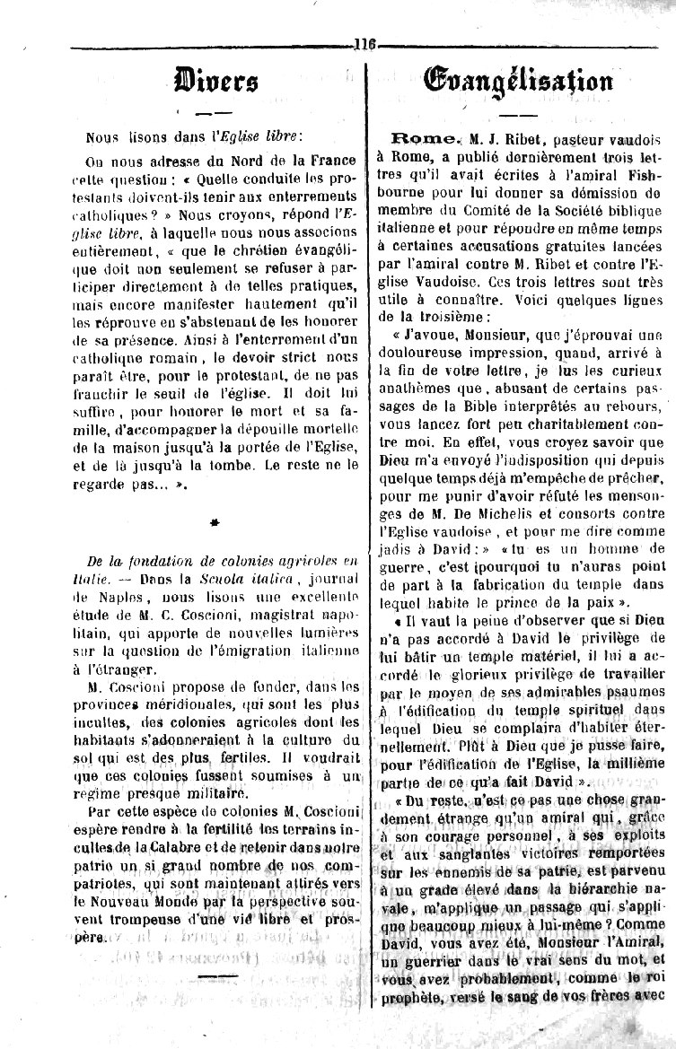 Nouvelles religieuses. — Divers. — Glanures. — Chronique vaudoise. — Chronique politique. — Annonce.