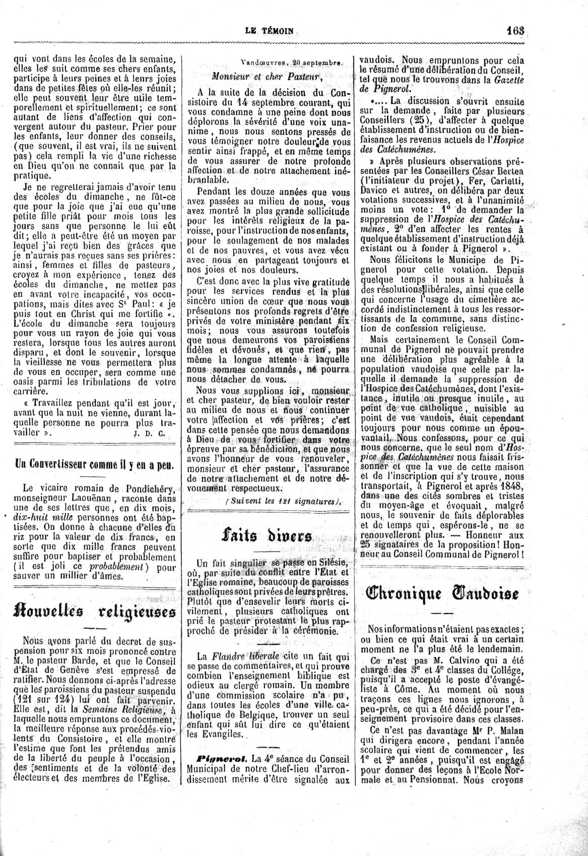 Nouvelles reîigieuset. — Faits divers. —