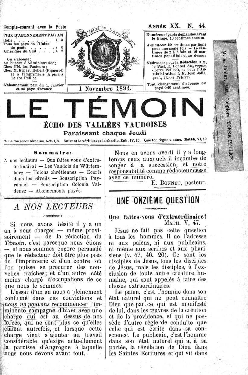 Pour 1894 M.rs Geymonat, Florence, Et. Malan ancien, Angrogne: