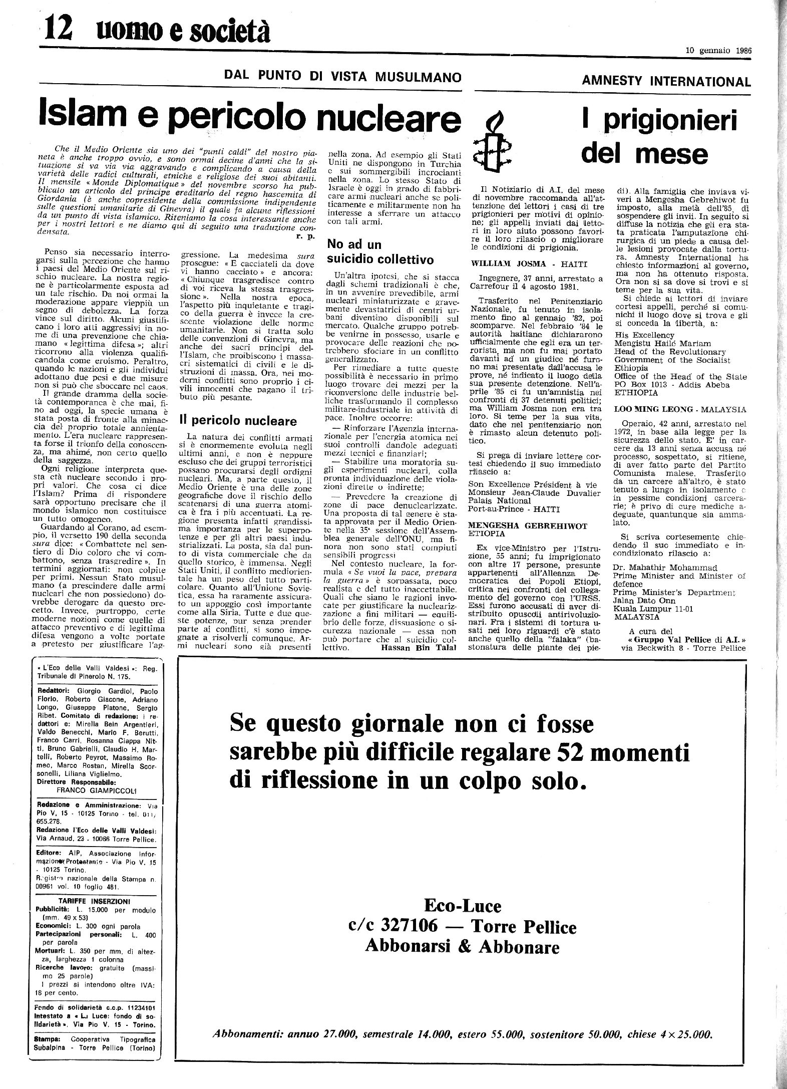 Abbonamenti: annuo 27.000, semestrale 14.000, estero 55.000, sostenitore 50.000, chiese 4 x 25.000.