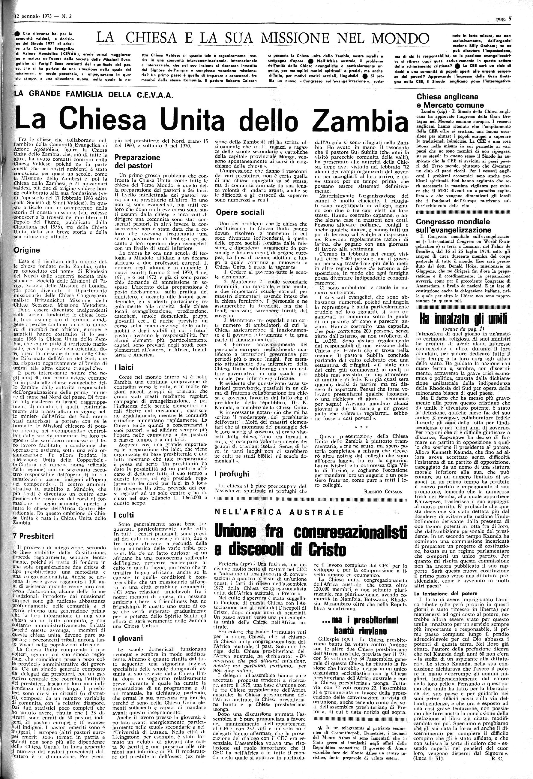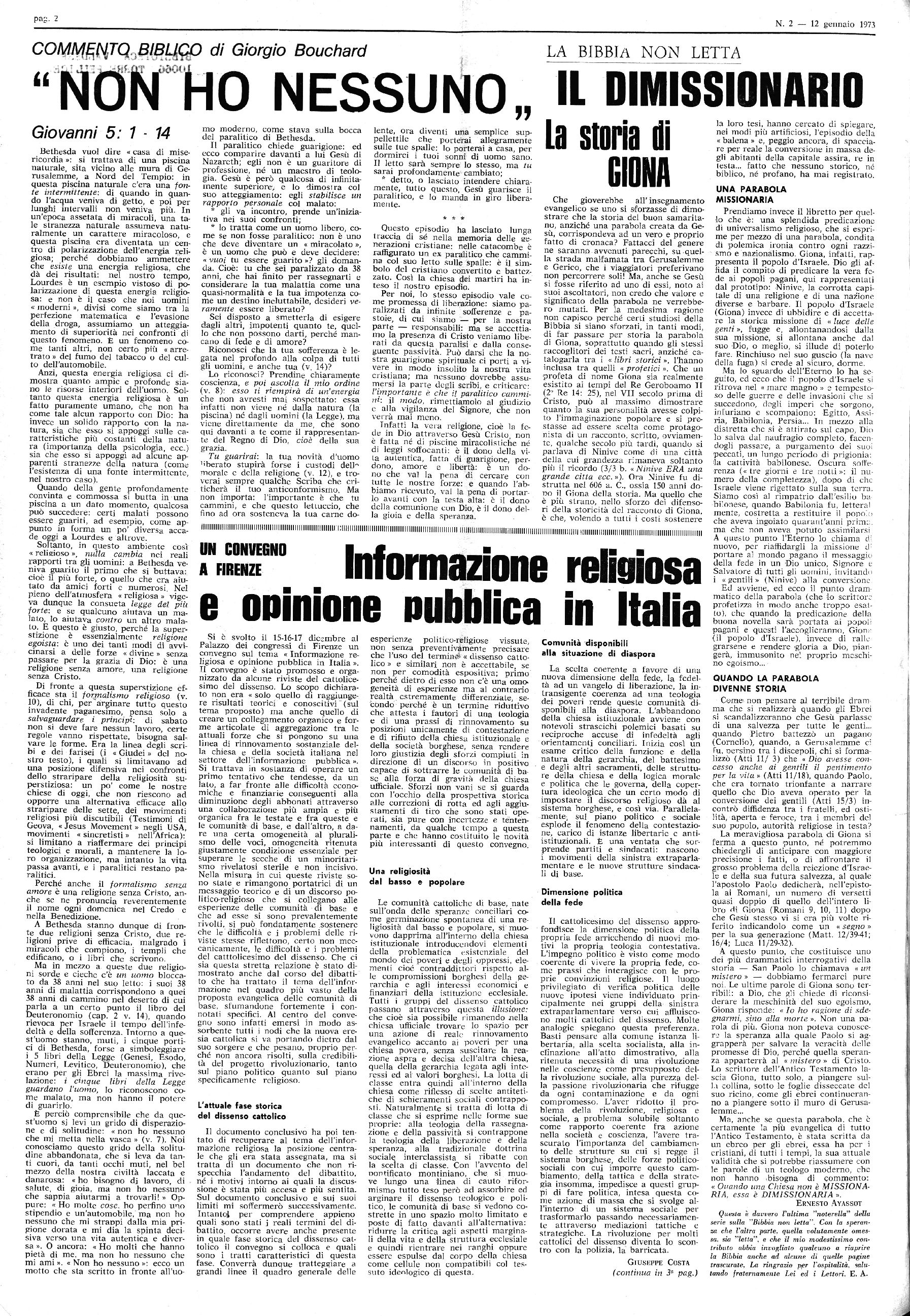 Anno 110 - Niim. 2 ABBONAMENTI | L. 3.500 per l’interno Sped. in abb. postale - I Gruppo bis/70 1 TORRE PELUCE 12 Gennaio 1973