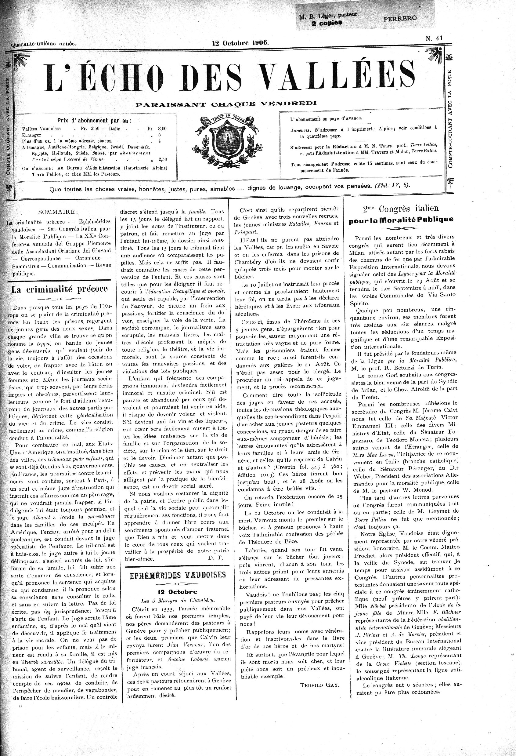 Torre Pelliee ; et chez MM. les Pasteurs.