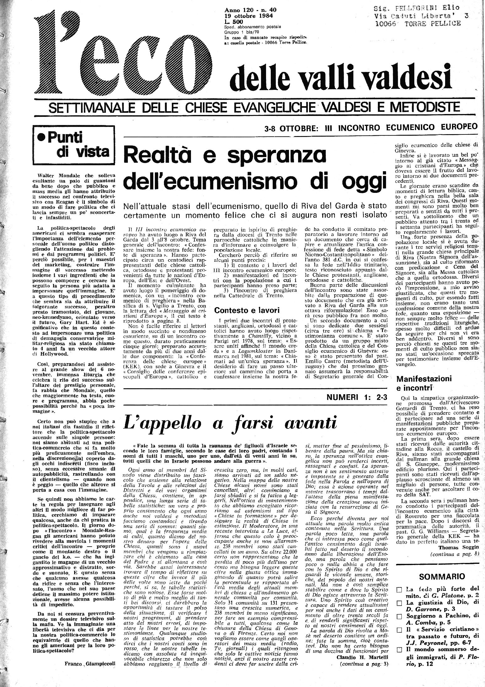 SETTIMANALE DELLE CHIESE EVANGEUCHE VALDESI E METODISTE