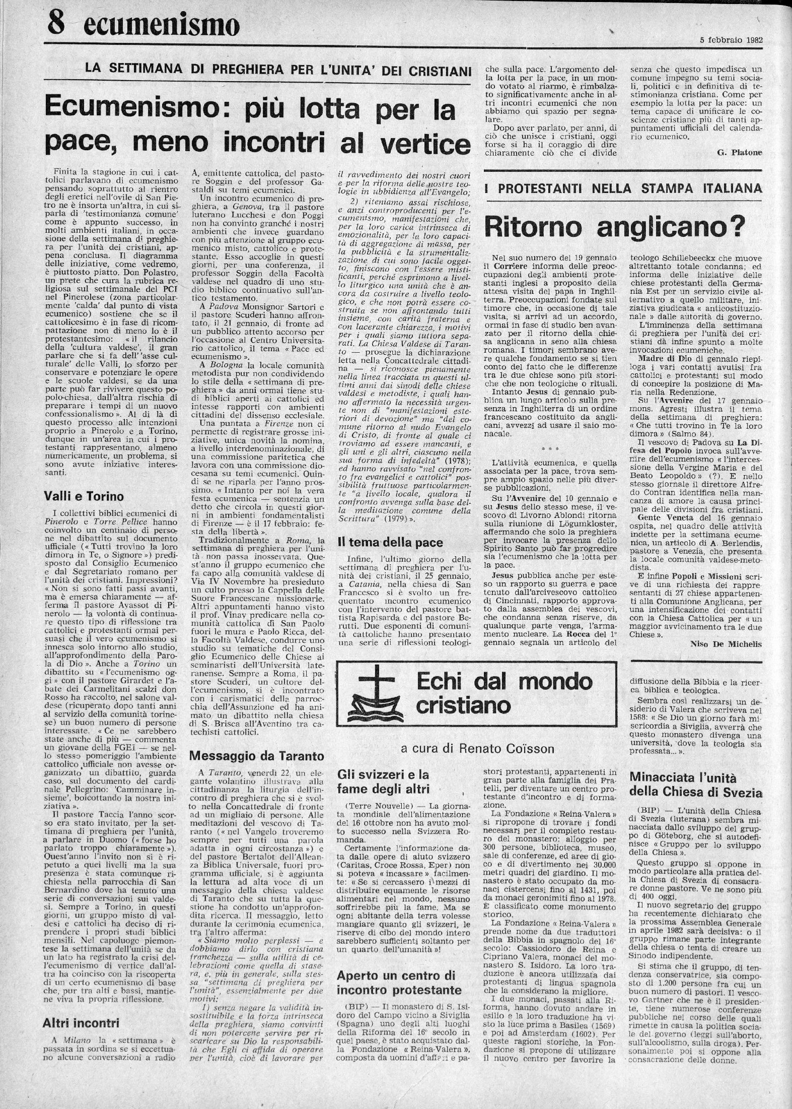 SETTIMANALE DELLE CHIESE EVANGELICHE VALDESI E METODISTE