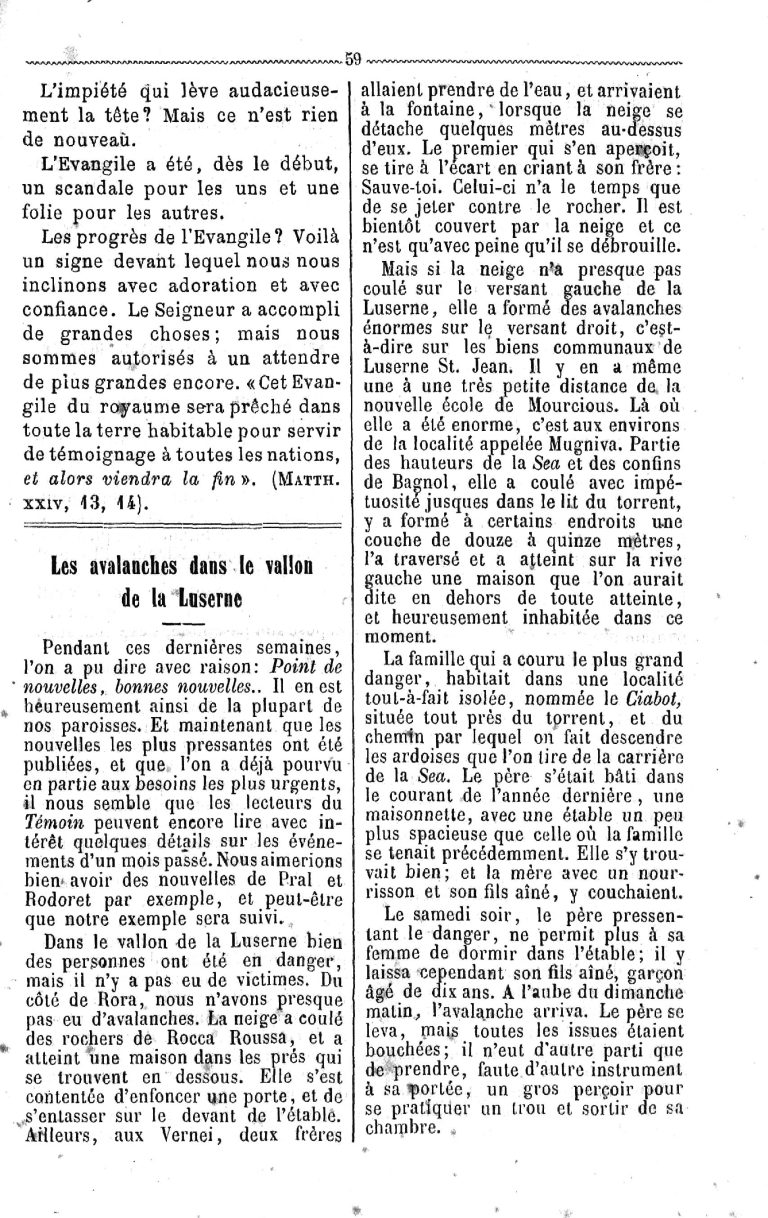 20 Février. L’Adventisme. Les avalanches dans le vallon de la Lusenic. — Tel