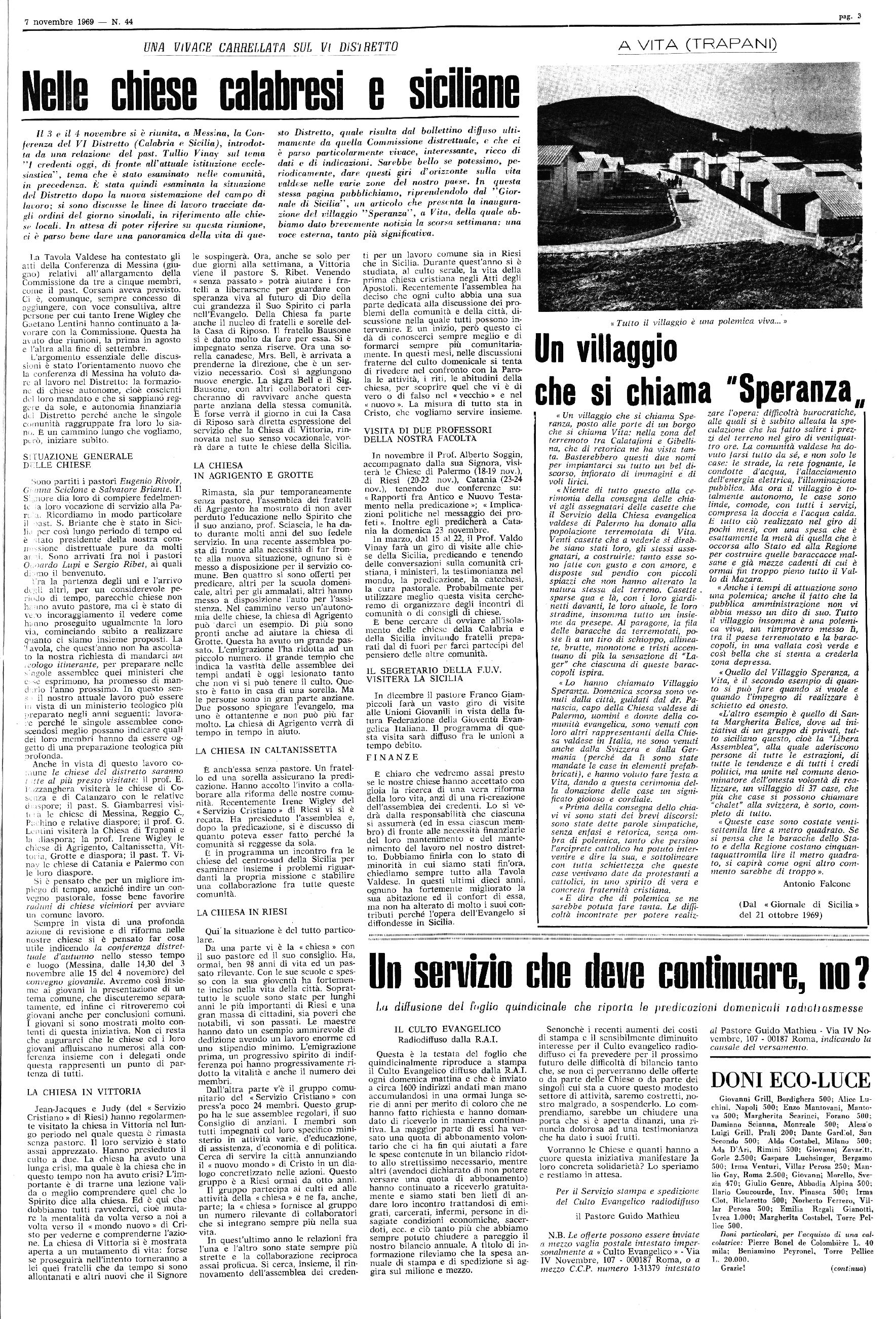 Anno 99 - Num. 44 ABBONAMENTI f Eco: L. 2.500 per l’interno 1 Sped. in abb. postale - I Gruppo bis/70 1 TORRE PELLICE — 7 Novembre 1969