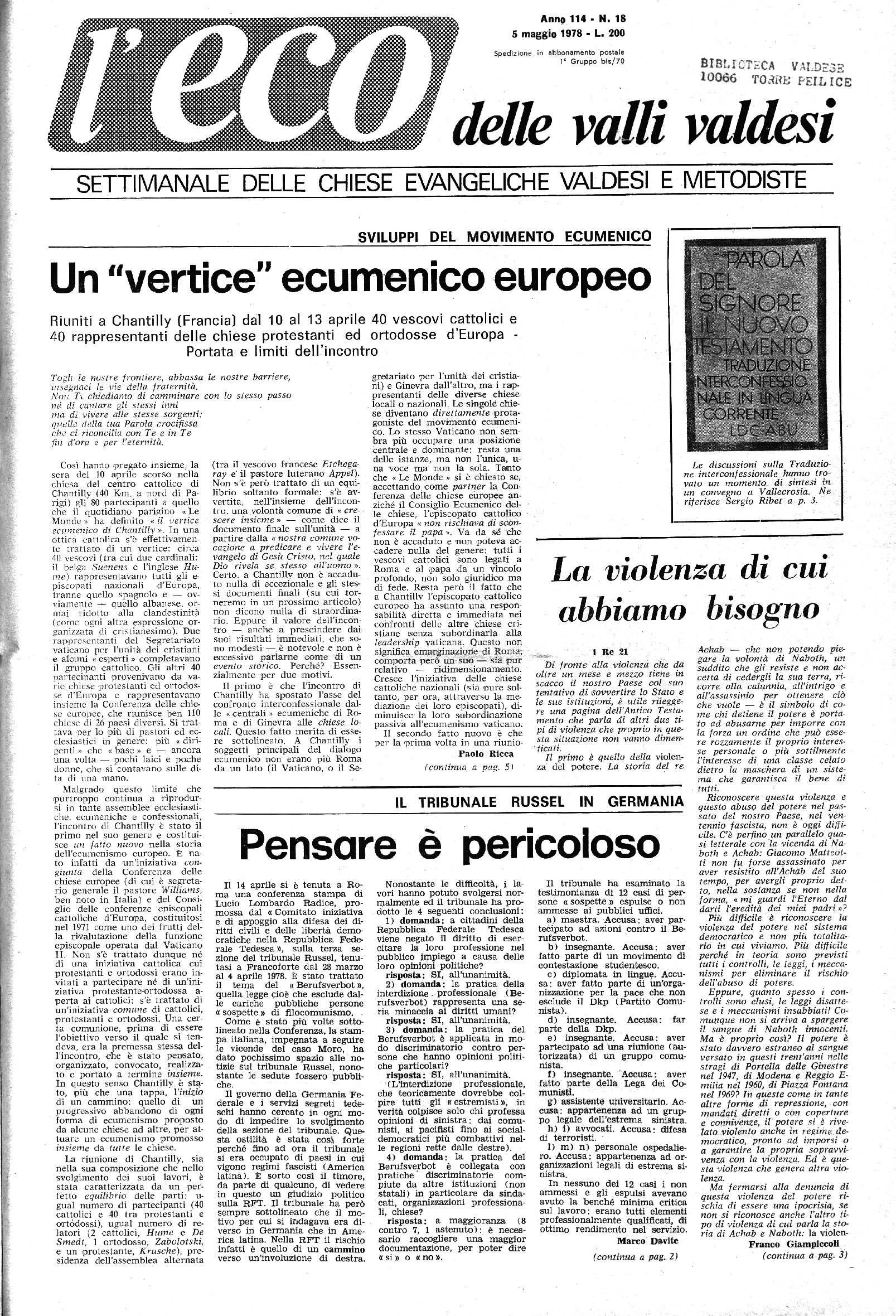 SETTIMANALE DELLE CHIESE EVANGELICHE VALDESI E METODISTE